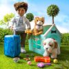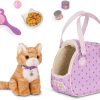 - Includes: A pet carrier bag, a 6-inch Orange Tabby cat plush, a pet collar, a brush, a toy ball, 2 cans of food, and a food bowl.