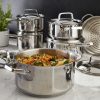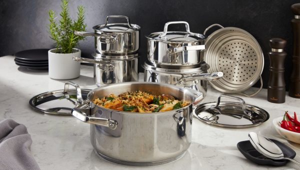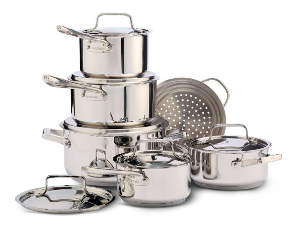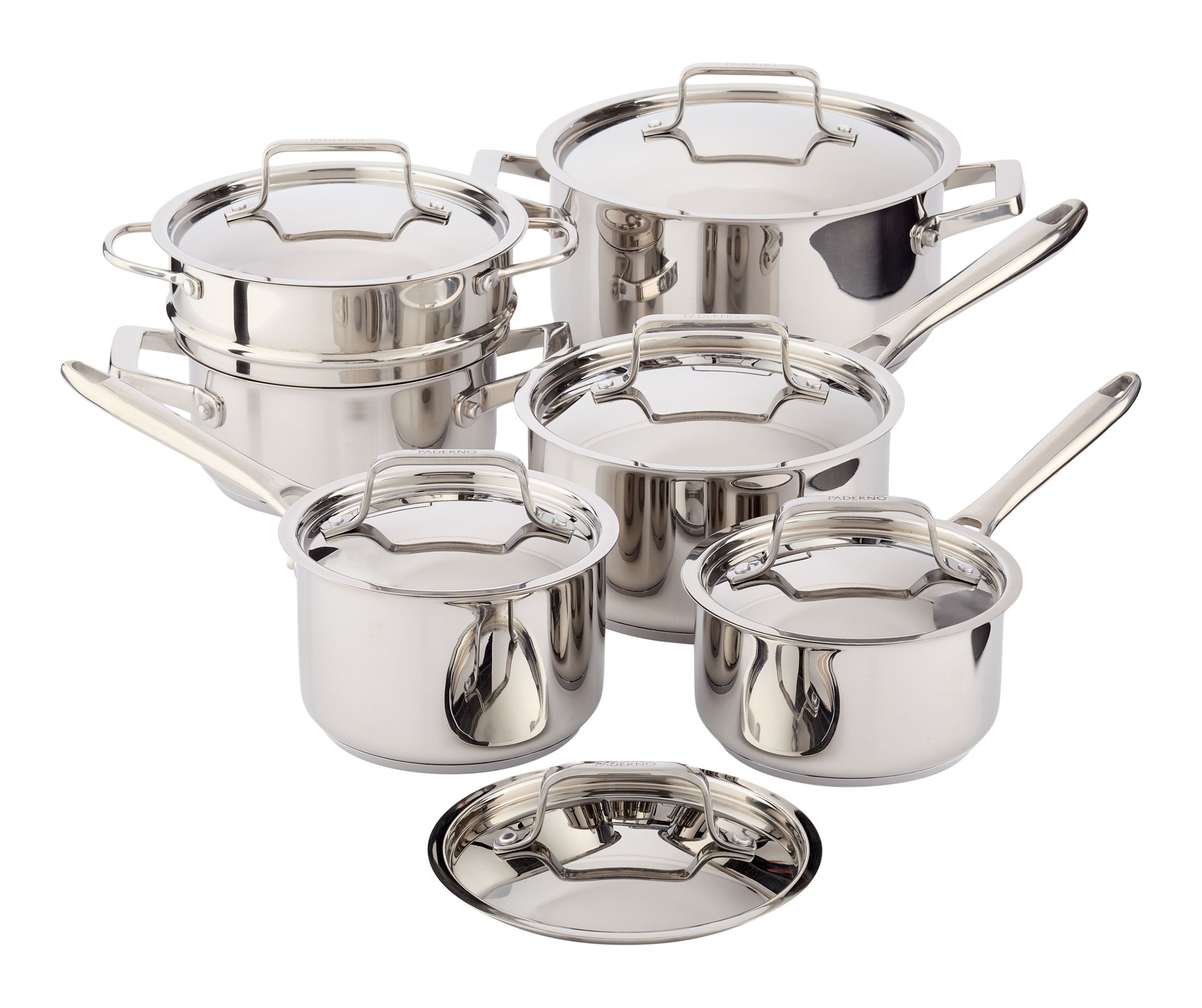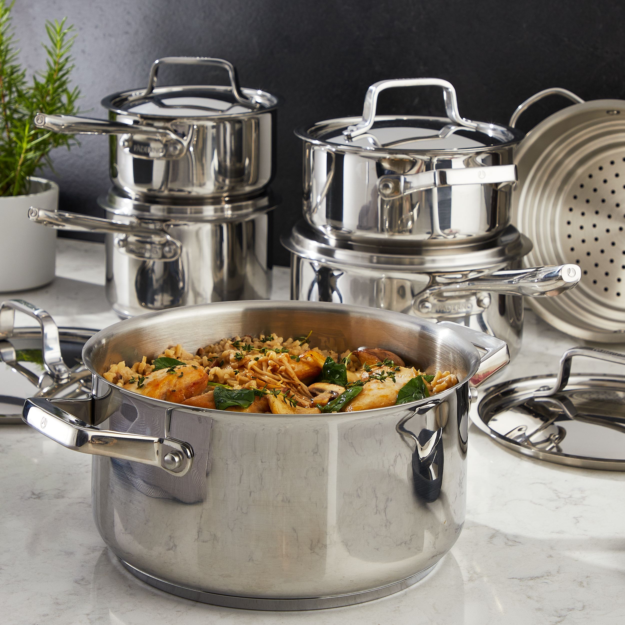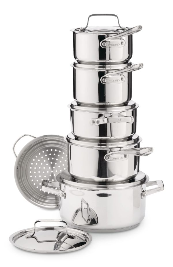 Elevate your kitchen with this PADERNO Canadian Signature Stainless Steel Cookware Set. This all-in-one collection includes all the essentials to tackle any recipe with ease. These durable pots and pans heat rapidly and evenly thanks to an aluminum-encapsulated base. With the ability to go from stovetop to oven up to 500°F and induction compatibility, this versatile set is ready for any culinary technique.