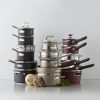 Elevate your cookware and enjoy your time in the kitchen even more with the PADERNO Classic Non-Stick Cookware Set. With an assortment of pots and pans for all your cooking needs, this PADERNO cookware set has many features to help make your time cooking and cleaning as easy as possible. The premium PFOA-free non-stick surface helps release food effortlessly so there’s less waste and easier clean-up. Durable heavy-gauge aluminum allows for even heat distribution throughout this non-stick cookware set, and the tempered glass lids retain heat and moisture for optimal steaming results.