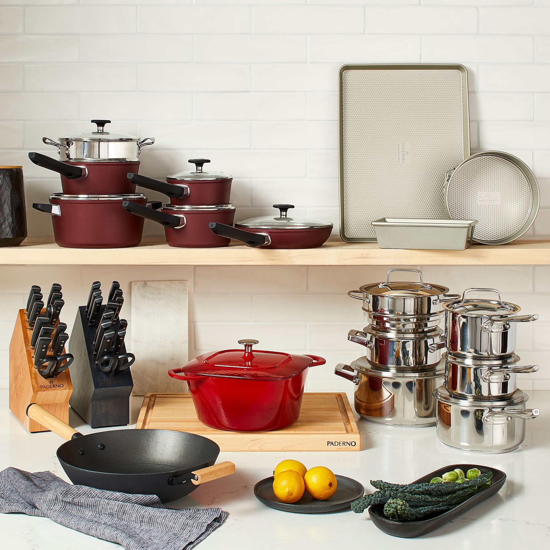 Elevate your cookware and enjoy your time in the kitchen even more with the PADERNO Classic Non-Stick Cookware Set. With an assortment of pots and pans for all your cooking needs, this PADERNO cookware set has many features to help make your time cooking and cleaning as easy as possible. The premium PFOA-free non-stick surface helps release food effortlessly so there’s less waste and easier clean-up. Durable heavy-gauge aluminum allows for even heat distribution throughout this non-stick cookware set, and the tempered glass lids retain heat and moisture for optimal steaming results.