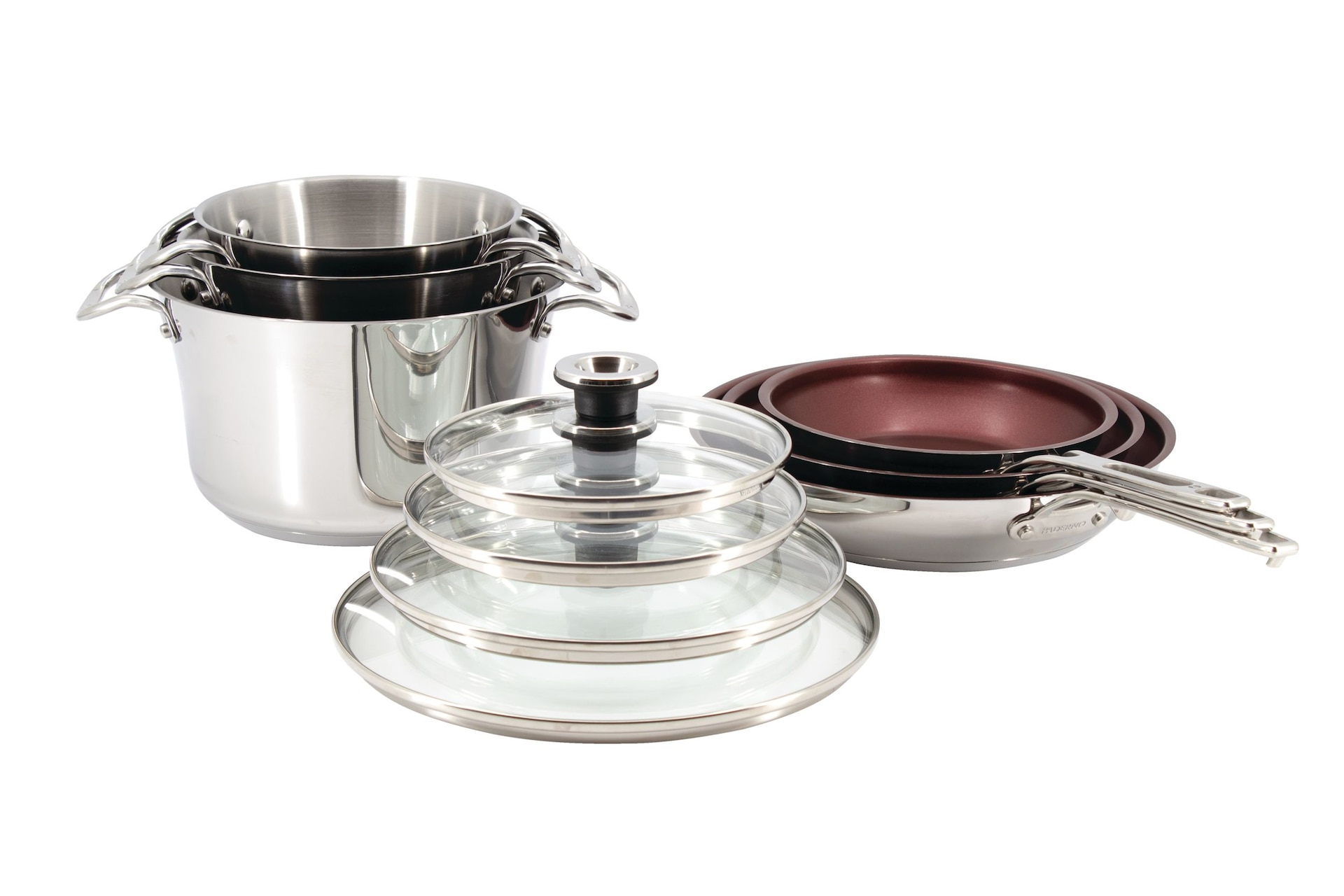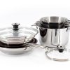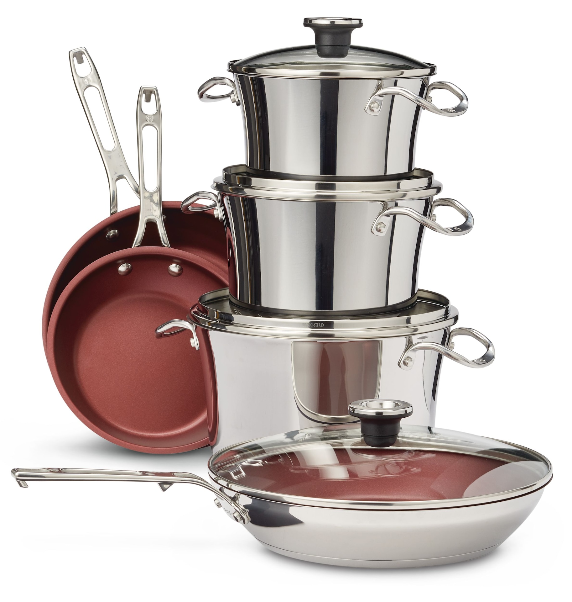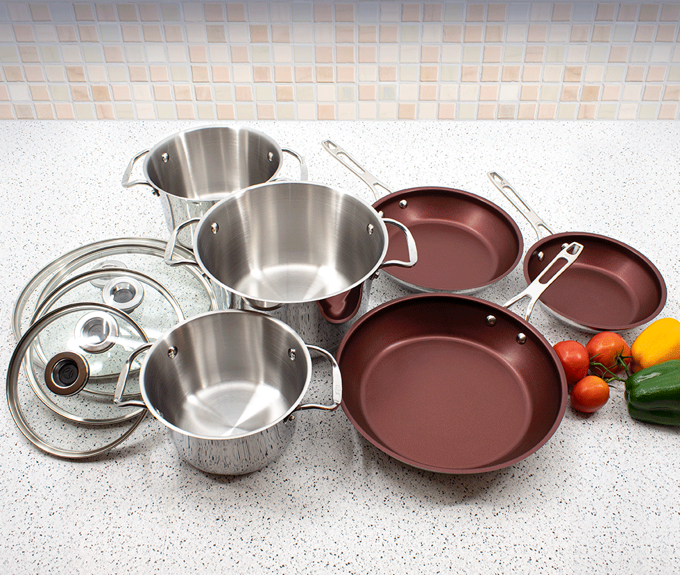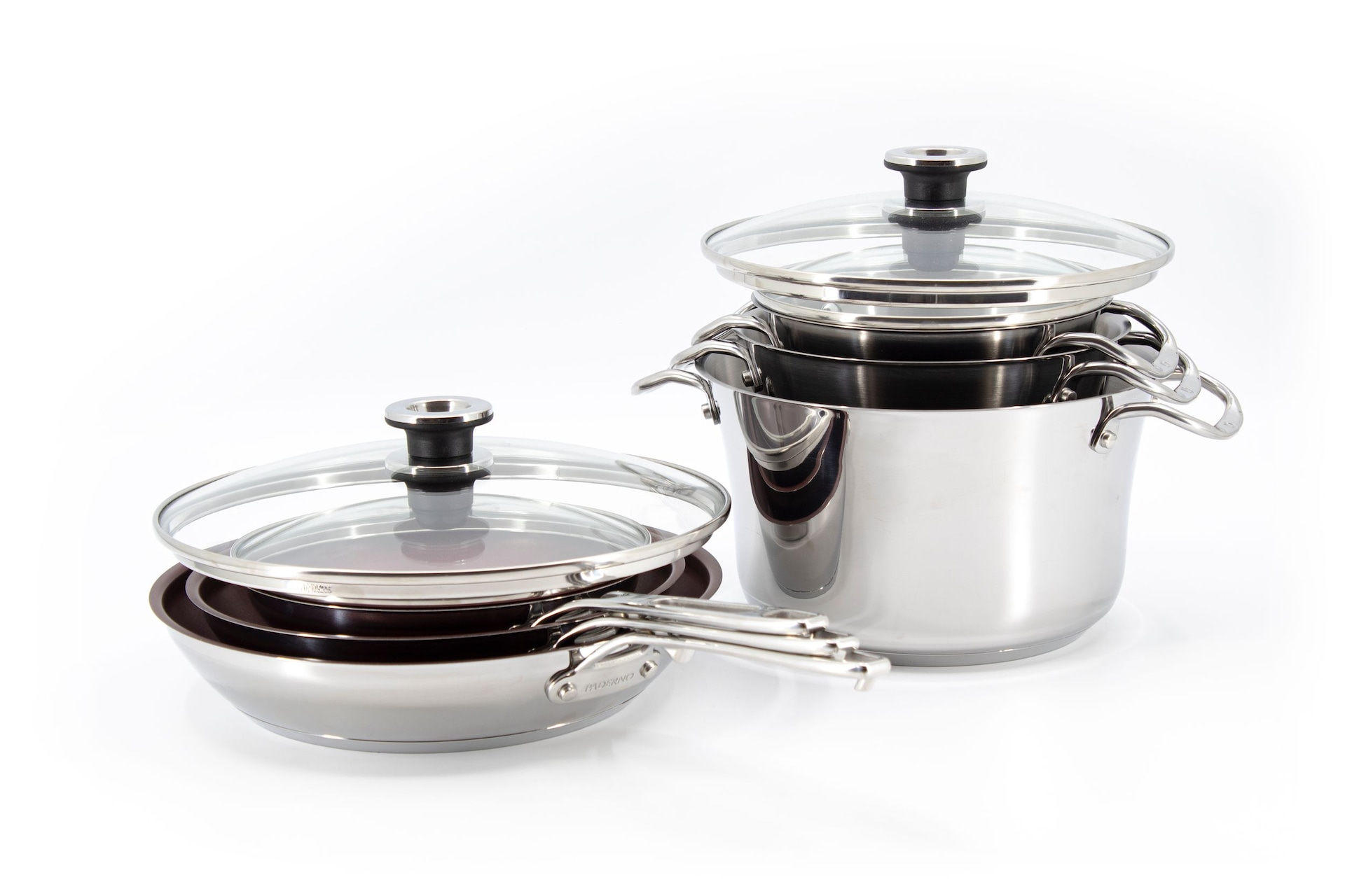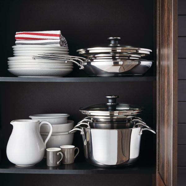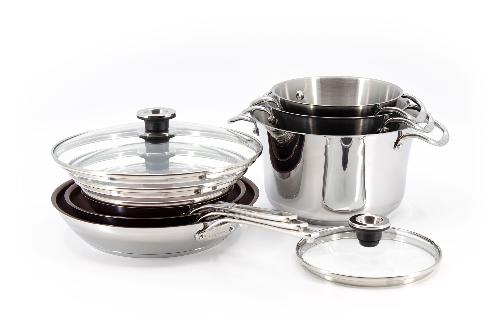 The PADERNO 10-Piece Cookware Set is designed for efficient stacking to save cabinet space. It includes a range of pots and pans in various sizes for all your cooking needs and applications. The high-quality stainless steel construction resists rust and corrosion to ensure durable, long-lasting use. Upgrade your kitchen equipment with this versatile, reliable cookware set that’s dishwasher-safe and suitable for use on induction stovetops.