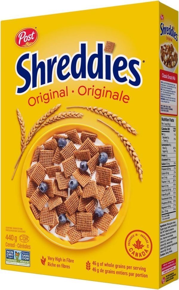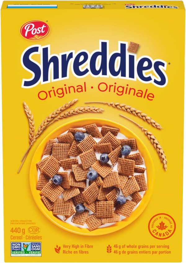 Post Shreddies Original cereal is a Canadian breakfast tradition. For over 75 years, the genuine goodness of Shreddies, made with 100% whole grain wheat, has been helping Canadians start their mornings right. At the heart of every bowl is a genuine goodness that makes us feel good inside.