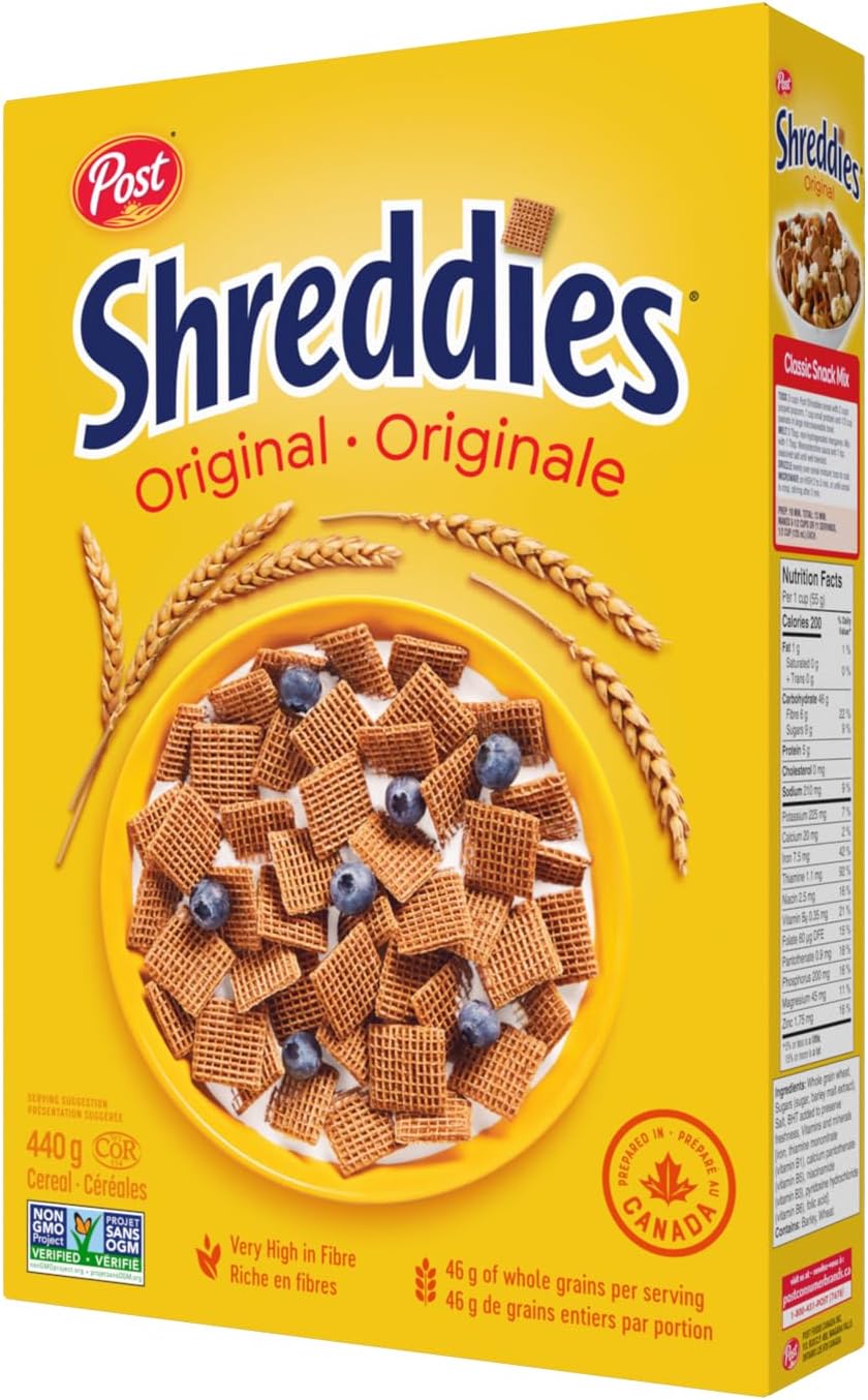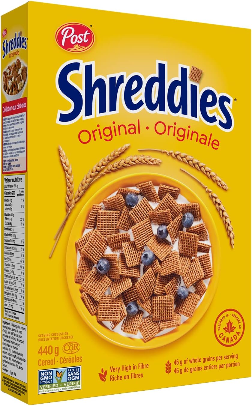 Post Shreddies Original cereal is a Canadian breakfast tradition. For over 75 years, the genuine goodness of Shreddies, made with 100% whole grain wheat, has been helping Canadians start their mornings right. At the heart of every bowl is a genuine goodness that makes us feel good inside.