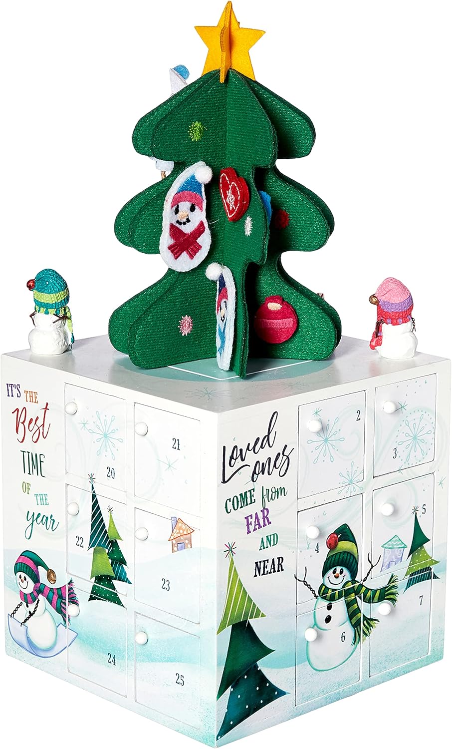 Snow much fun! This adorable snowman family is here to welcome the cutest Christmas countdown ever. Each day, the family can gather and open a door to see a mini figurine inside.