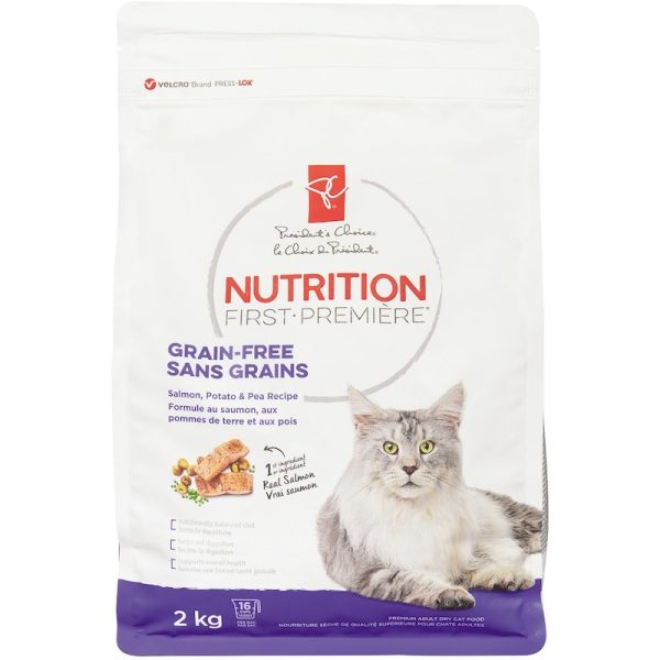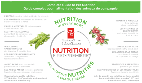 PC® Nutrition First® Grain Free recipes are specifically developed to support pets with an inability to digest grains. This complete and balanced recipe forms the foundation of the PC® Nutrition First® Grain Free pet food collection. Added supplements and plants provide additional benefits to support your pet’s overall health: Taurine – an essential amino acid supporting eye and heart health. Yucca schidigera – a plant to help reduce fecal odour. Chicory root – a prebiotic source to promote a healthy gut. Peas – a source of minerals, vitamins and fiber. Packed with real salmon as the first ingredient and nourishing fruits and vegetables, our wholesome recipes contain essential nutrients to help your pet live a healthy grain free life.