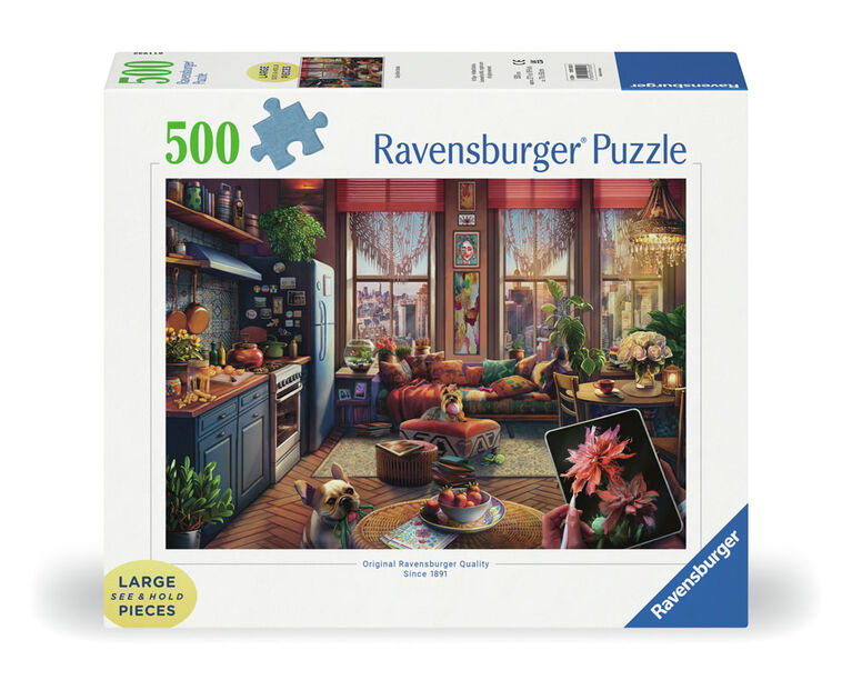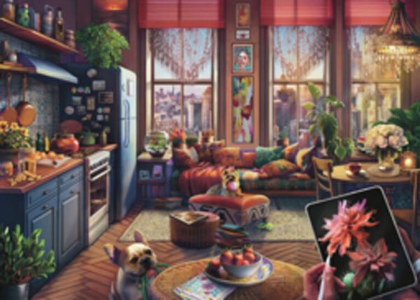 Breathe some free-spirited, creativity into your world as you relax with this “Cozy Boho Studio” puzzle! Imagine yourself in this comfy bohemian artist retreat in the heart of New York City, sipping a lovely cup of tea with refreshing lemon. Baxter is patiently waiting for his walk as soon as you take a break from your digital drawing. Perky Peppa is ready to play keep-away, or join in the jaunt. With loads of delightful details to enjoy, good vibes await with every piece of puzzle fun!