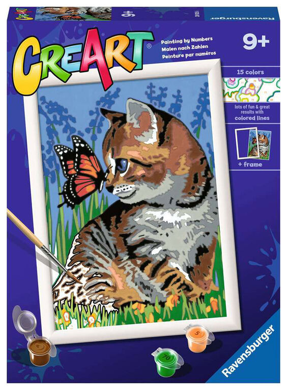 Encourage kids to ditch their screens and be creative with a beautiful butterfly and curious kitten in the Ravensburger “Best Friends” CreArt Painting by Numbers!