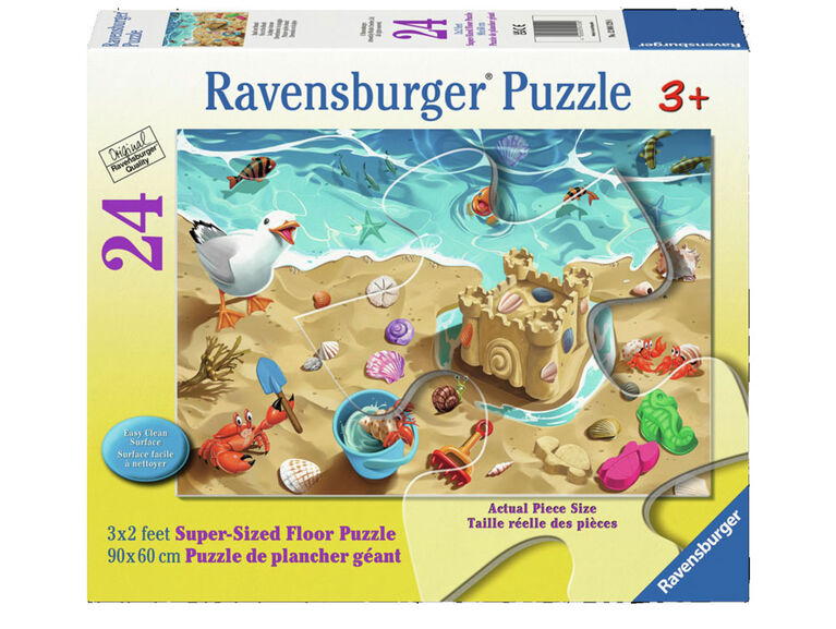 The 24 Piece Giant Floor Puzzle, Fun on the Beach is a delightful and engaging puzzle designed for young children who love the seaside. A friendly seagull perches on the sand with various colourful shells scattered around. A brightly colored bucket is ready for collecting the shells as cute little crabs scuttle across the sand. The large, sturdy pieces are perfect for young children, promoting the development of fine motor skills, hand-eye coordination, and problem-solving abilities.