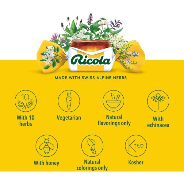 Ricola Honey Lemon with Echinacea cough drops help soothe your cough and sore throat. The please taste of these Ricola cough drops comes from real golden honey with refreshing herbal lemon balm and Echinacea from the Swiss Mountains. For nearly a century, Ricola has been helping throats around the world feel better. World-famous Ricola cough drops and throat drops are made with 10 high-quality herbs grown high in the Swiss mountains, each with uniquely distinct traits. Ricola helps support you with soothing cough relief and sore throat relief.