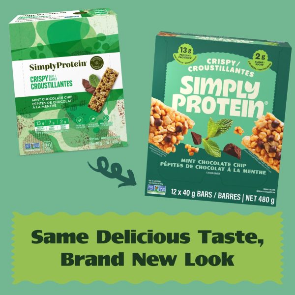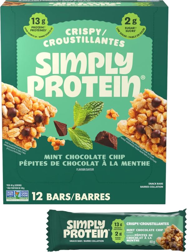 Simply Protein – Mint Chocolate Crispy Bars – Plant Based Protein Bars – Low Carb, Low Sugar, High Fibre – 13g Protein, 2g Sugar, 7g Fibre – Vegan, Gluten Free, Non GMO, Kosher – 12 Bars