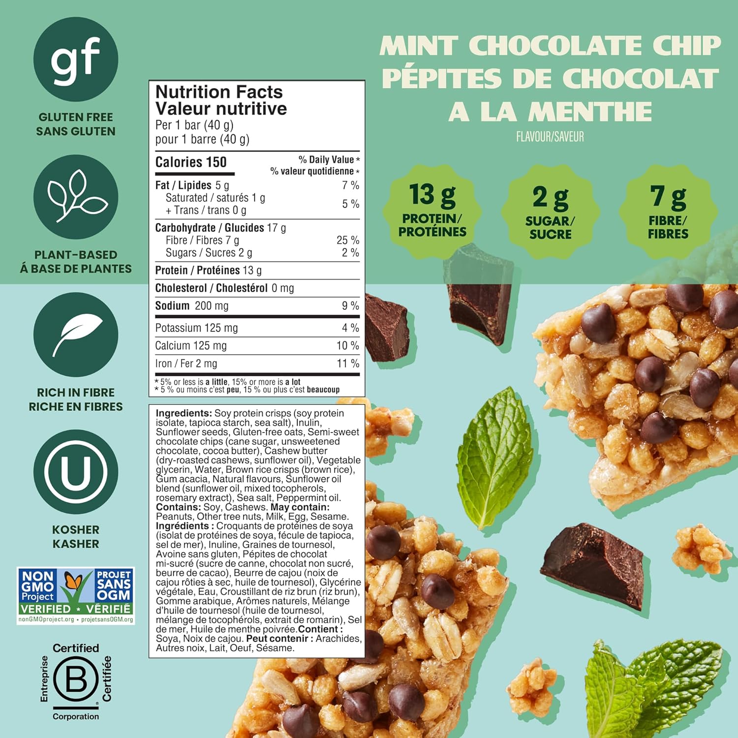 - Made With Only the Good Stuff – Our bars are plant-based, kosher certified, non-GMO, rich in fibre, and gluten-free. They're also a good source of iron and contain calcium and potassium, making them ideal on-the-go snacks or pre/post-workout energy bars.