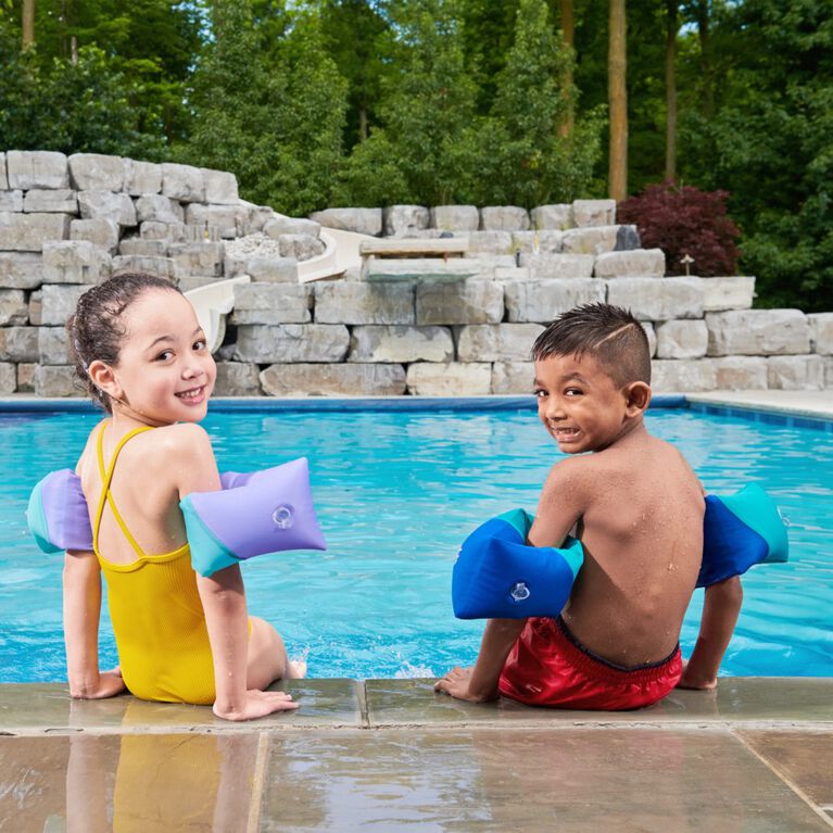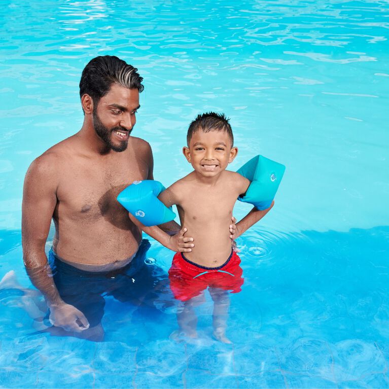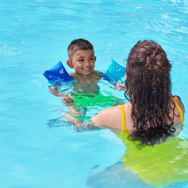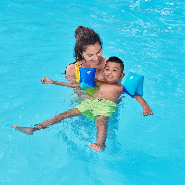Build strength and confidence as you explore the water with the Swimways Soft Swimmies water wing pool floaties for kids! These water floats are a great way to learn how to swim, providing children with the confidence they need to build up their swimming skills. The toddler pool floaties are designed to be quick and easy to put on and take off, with soft, quality fabric that does not stick to skin, for days when you need to rush to and from the pool, lake or beach! Kids can enjoy outdoor games and hours of fun in the water in comfort thanks to the soft fabric which makes these kids floaties for pool a pleasure to wear! For increased safety, the Soft Swimmies include dual inflation chambers and child safety valves, so you can peacefully relax and soak up the sun as your child splashes in the water! This pool and lake float is the perfect toddler toy and kids life vest for a day at the swimming pool, lake or beach. Share your love of the water with your child and help them learn to swim! From introducing your little one to the water with our Infant and Baby Spring Float line, to providing buoyancy for the first paddle with the Toddler Float and Swim Trainers, to finally developing strength and confidence with Soft Swimmies and Dive Toys, the Swim Steps program offers products for all skill levels! Suitable for kids aged 3-5 years.