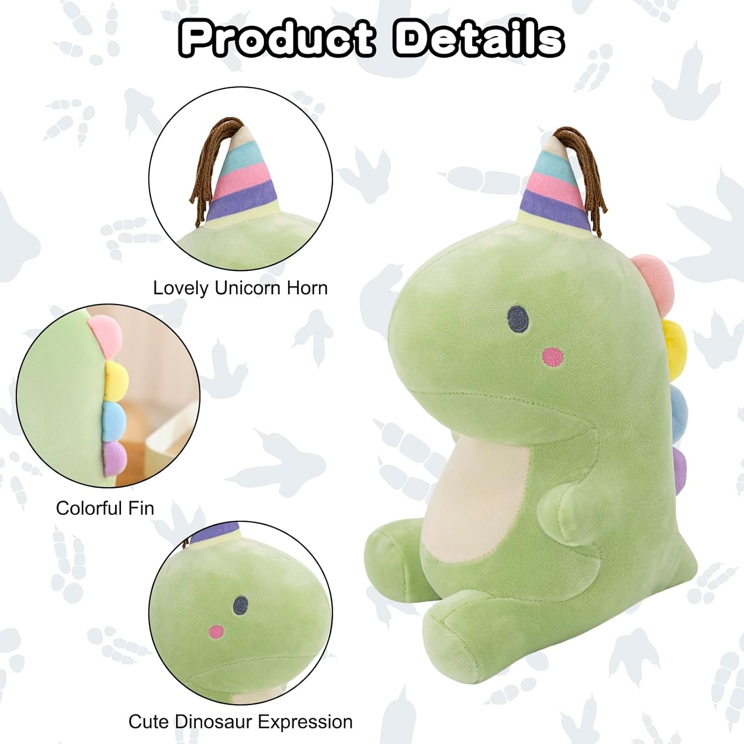 - 【Creative Plush】Cute cartoon design, with a unicorn horn, no one can resist his charm. All bad emotions and work stress will disappear when you embrace the dino plushie toy!