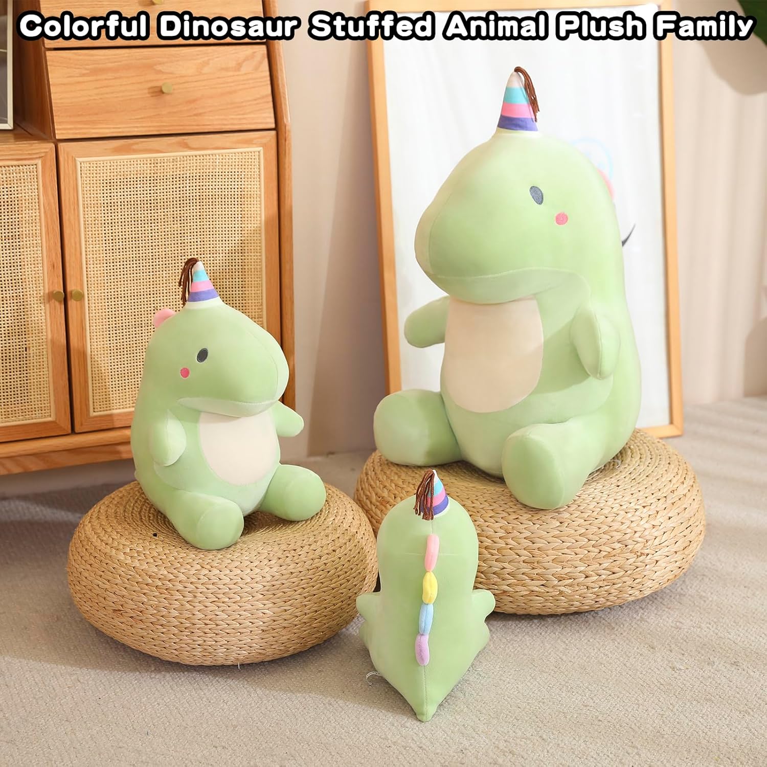 - 【Perfect Gift】This colorful dino plush can decorate a birthday party or for family, children, friends, etc. Different shapes can meet people's needs.