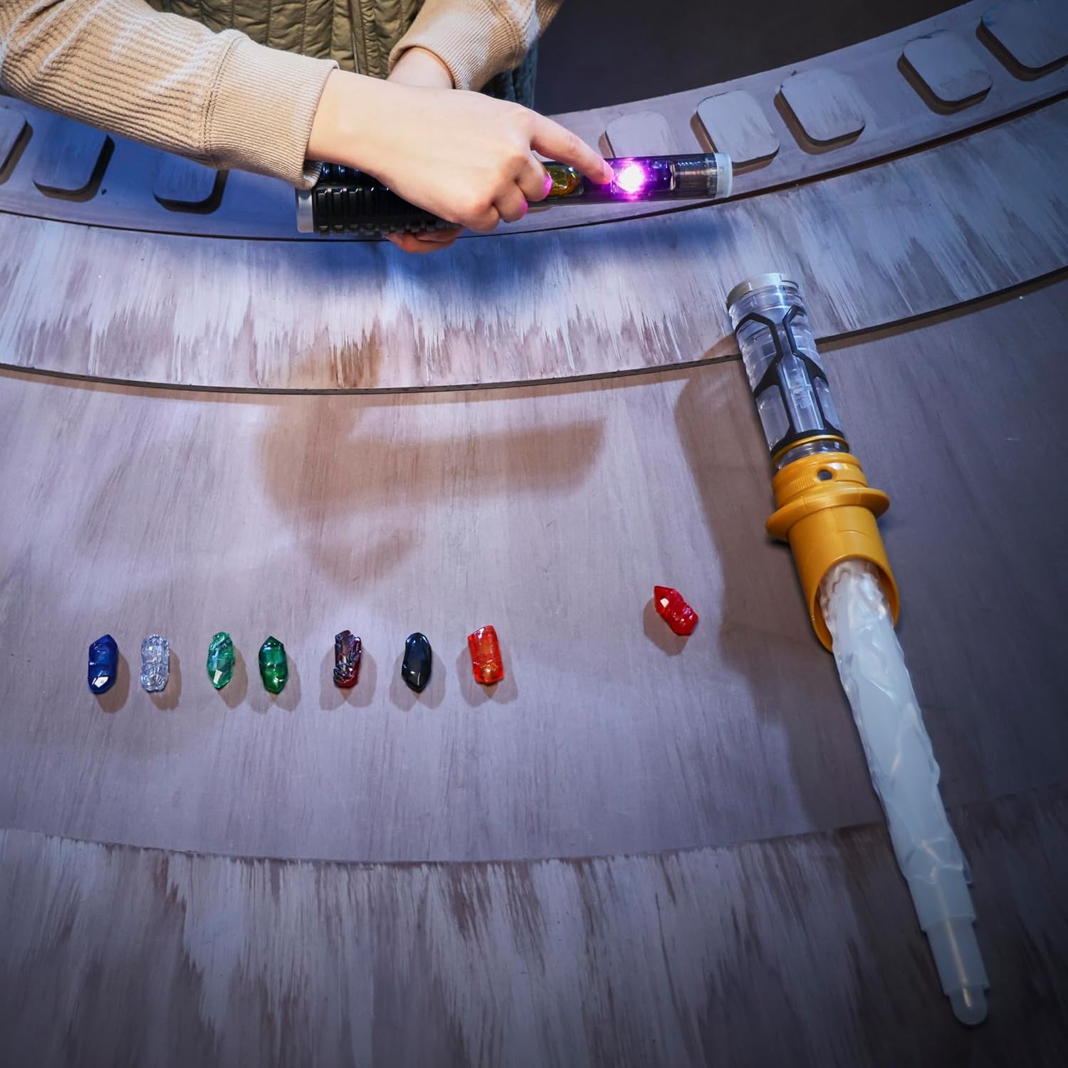 - INCLUDES 10 KYBER CRYSTALS: Inspired by the kyber crystal found at the heart of every Lightsaber, this set includes 10 different crystals for ultimate Lightsaber customization. Watch the crystals glow when inserted into the hilt