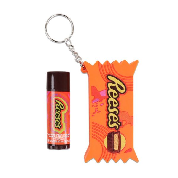 A keychain that looks like your favorite peanut butter chocolate candy, with a lip balm in the back of the keychain. Attach to your backpack for on the go.