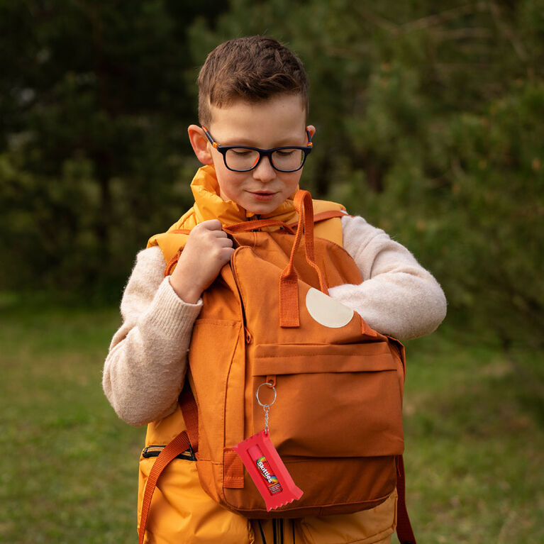 A keychain that looks like your favorite rainbow candy, with a lip balm in the back of the keychain. Attach to your backpack for on the go.