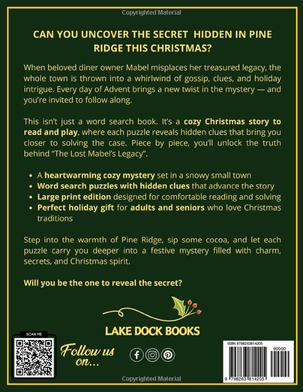 The Lost Mabel’s Legacy – A Cozy Christmas Advent Mystery Puzzle Book: Read the Story and Solve Word Search Puzzles with Hidden Clues to Reveal the Secret (Large Print for Adults and Seniors)