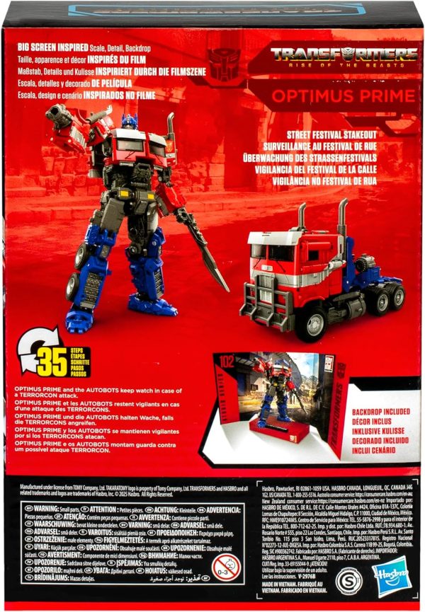 - TRANSFORMERS: RISE OF THE BEASTS OPTIMUS PRIME: This Transformers Studio Series 102 Optimus Prime action figure is highly articulated for poseability and features movie-inspired deco and details