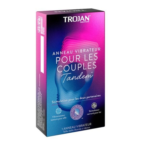 Pleasure got just better with Trojan vibrations Tandem Couples Vibrating Ring. Designed to stimulate both partners simultaneously, tandem breaks bedroom bounds, making for pleasure that really lasts! The Trojan brand is Canada’s #1 Sexual Health brand and promotes a safe, healthy, and fun sex life. From condoms to vibrators to lubricants, Trojan is dedicated to delivering innovative, high-quality products that offer pleasure and protection.