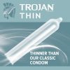 Trojan Thin Lubricated latex condoms are thinnest at the closed end, where a man is most sensitive, for a more pleasurable experience. Each condom is made from a premium quality latex for an enhanced intimate experience. Every condom is individually electronically tested and meets North American standards for strength to help ensure its reliability. Latex condoms are intended to prevent pregnancy, HIV/AIDS, and other sexually transmitted infections (STIs). The Trojan brand is Canada’s #1 Sexual Health brand and promotes a safe, healthy, and fun sex life. From condoms to vibrators to lubricants, Trojan is dedicated to delivering innovative, high-quality products that offer pleasure and protection.