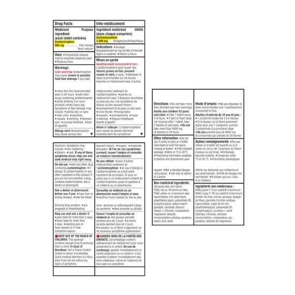 Get fast relief of headaches, aches and pain, and fever with TYLENOL Extra Strength 500mg EZTABS that are tough on pain, but gentle on your stomach. Containing 500 milligrams of acetaminophen in each tablet, TYLENOL Extra Strength offers fast and effective relief of pain and fever. These easy-to-swallow tablets act quickly to provide effective relief of headache, tension headache, mild to moderate migraine pain; pain of mild to moderate arthritis pain, minor muscle sprains and strains, menstrual cramps and aches and pains due to cold and flu.