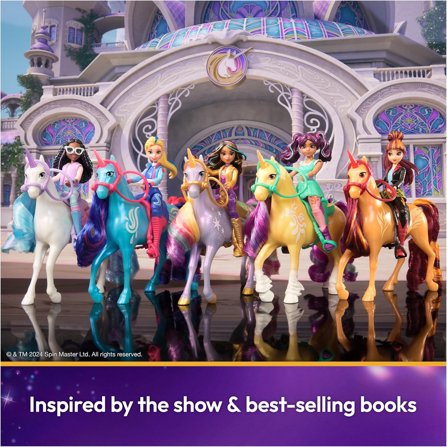 Celebrate the bond between rider and unicorn with the Unicorn Academy Sophia & Wildstar Set. Inspired by the NETFLIX animated show and best-selling book series where friendship reins, this set will spark endless imaginative storytelling. 4.5-inch Sophia features realistic true-to-show details and 7 points of articulation for dynamic poses. Wildstar stands at 5 inches tall, complimenting Sophia’s look with Light Magic markings and brushable rainbow mane and tail (brush included). As you play, pose Sophia to sit on Wildstar and ride into adventure. With the removable bridle and saddle accessories, Sophia can securely stay in place on Wildstar. For more ways to experience Unicorn Academy with your favorite characters, look for the other small dolls, including Ava, Layla, Isabel, Valentina, and their unicorns (sets sold separately) and expand your world. For kids who enjoy unicorns and horse toys, dolls & accessories, doll house play, collectibles, plush toys and more, Unicorn Academy toys are fun birthday gifts for girls or gifts for any occasion. Experience enchanting Unicorn Academy adventures with the Sophia & Wildstar Set.