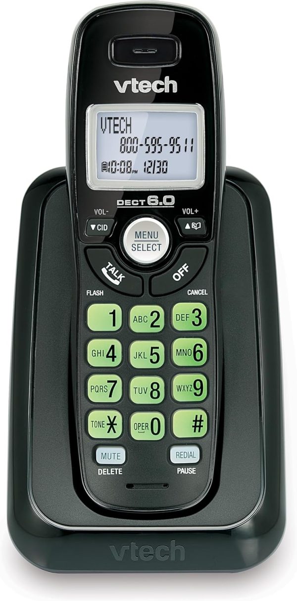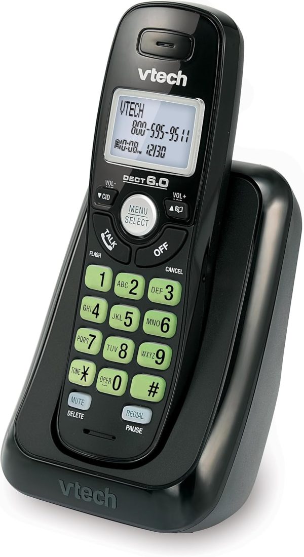 VTech DECT 6.0 Single Handset Cordless Phone with Caller ID, Green Backlit Keypad and Display