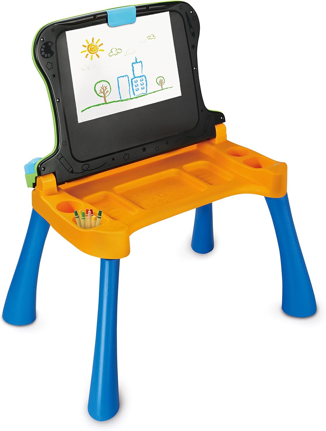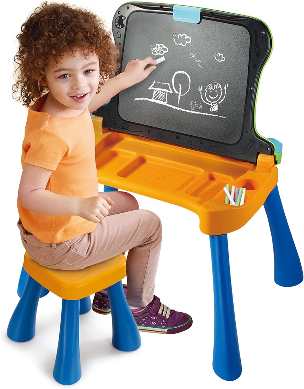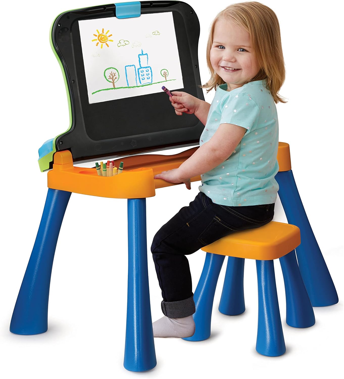 - Encourage kids to learn, create explore with an interactive desk that transforms into an easel and chalkboard; makes the perfect gift for little ones getting ready for school