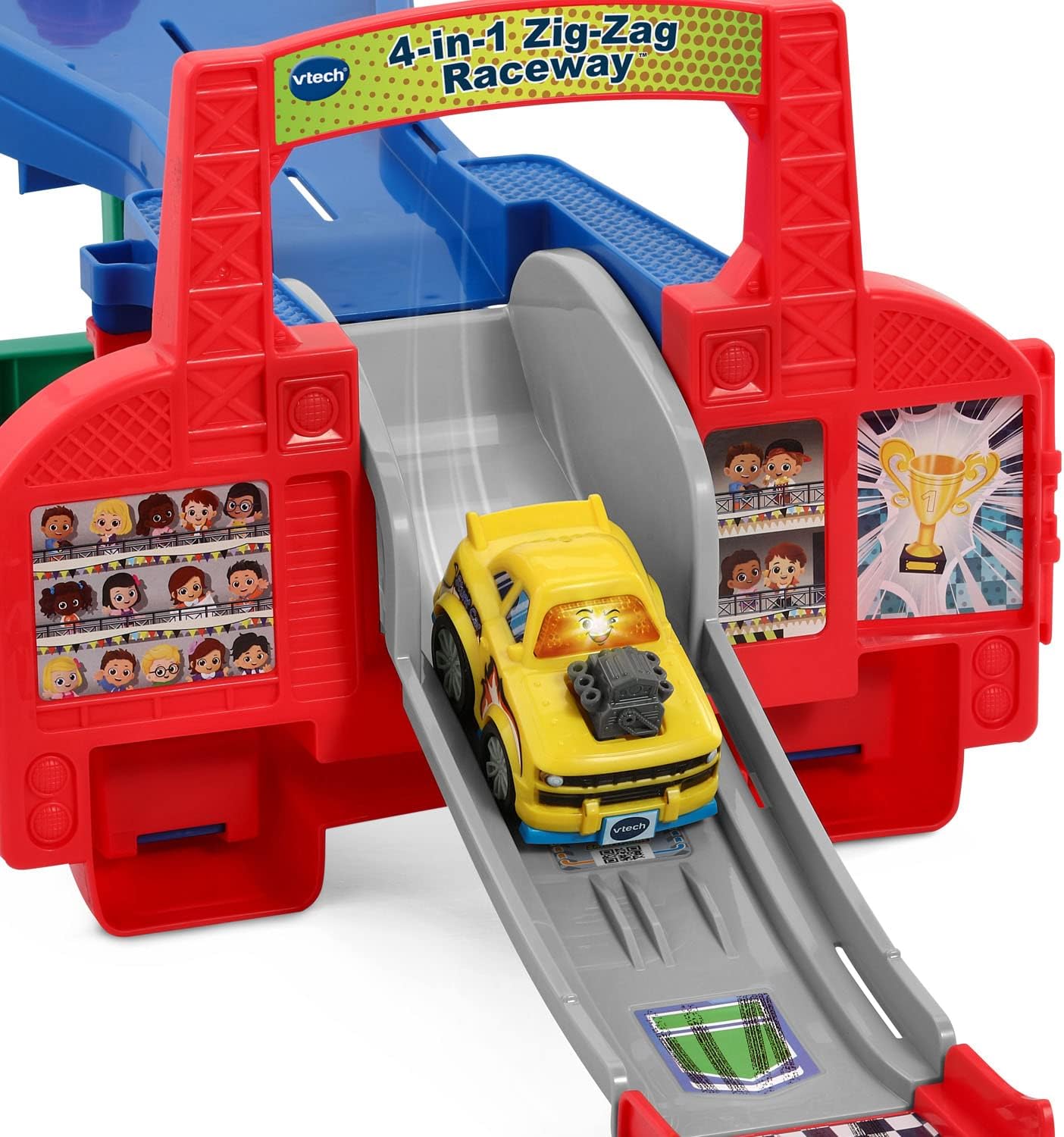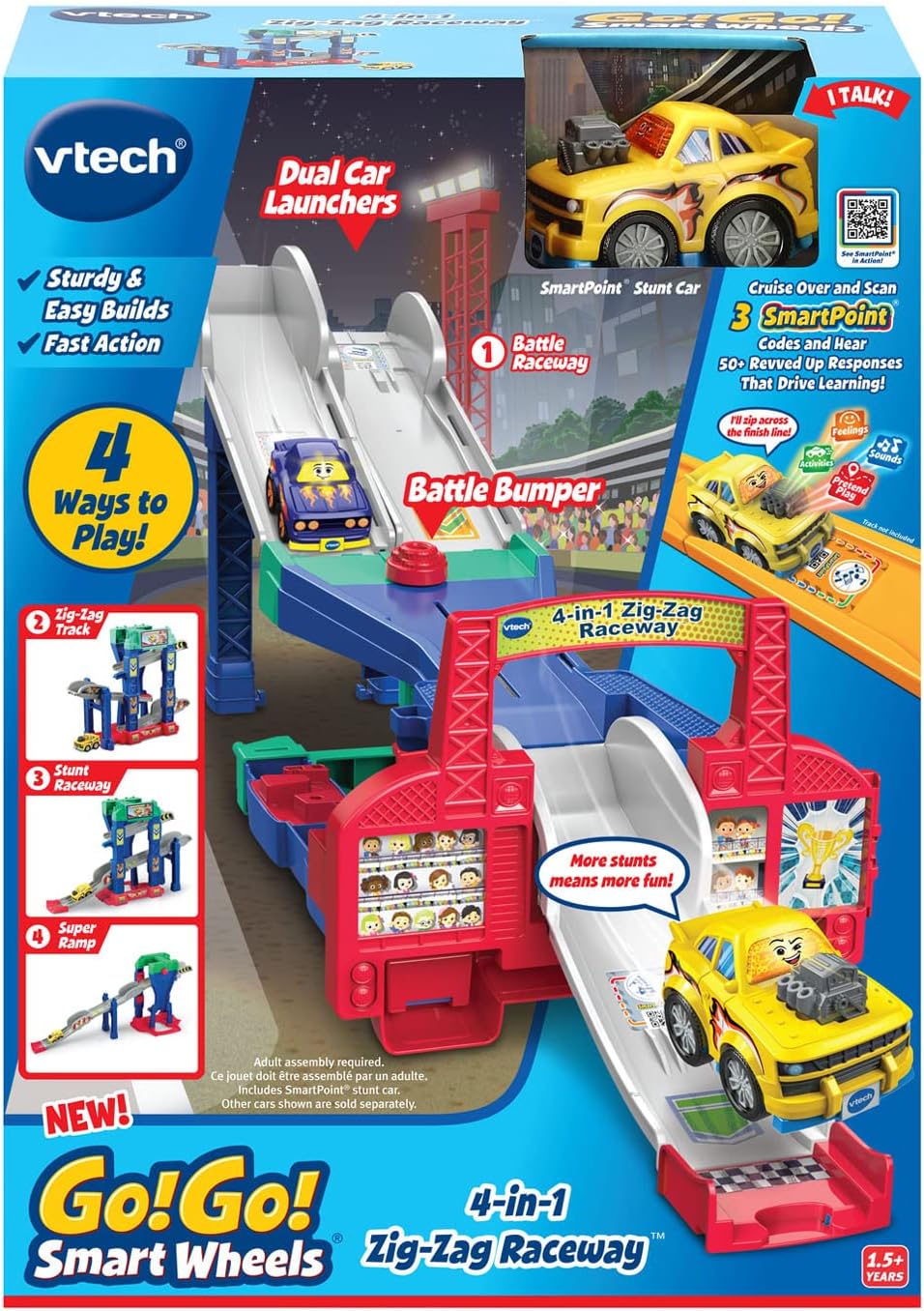 - Ramp up speedy track play with a 4-in-1 zig-zag raceway and electronic SmartPoint stunt car