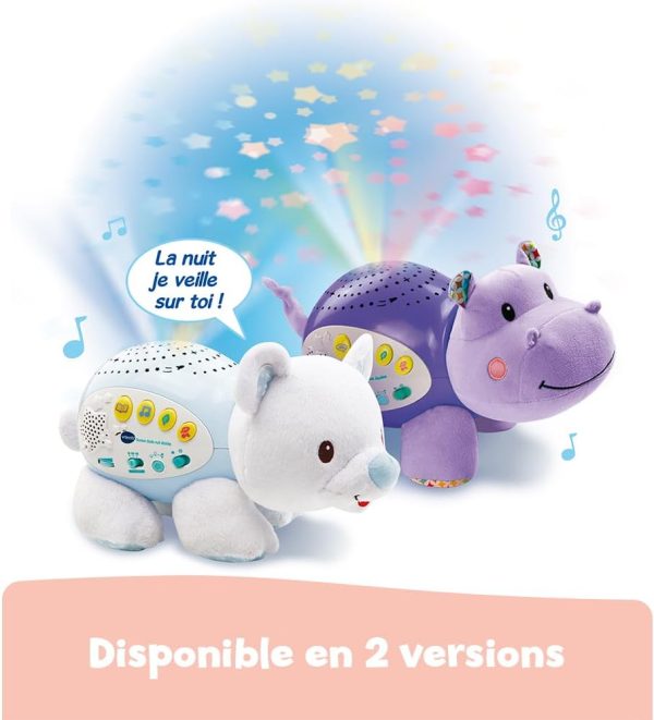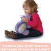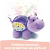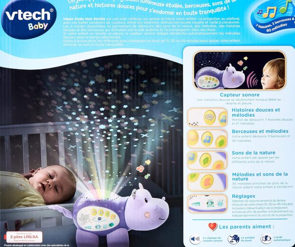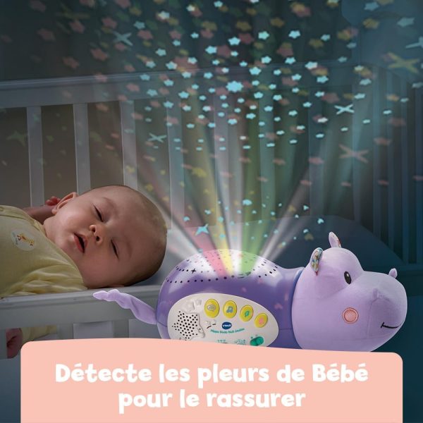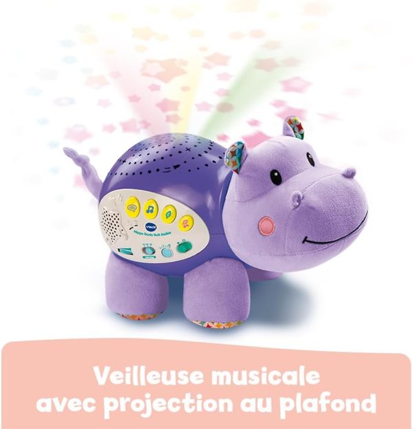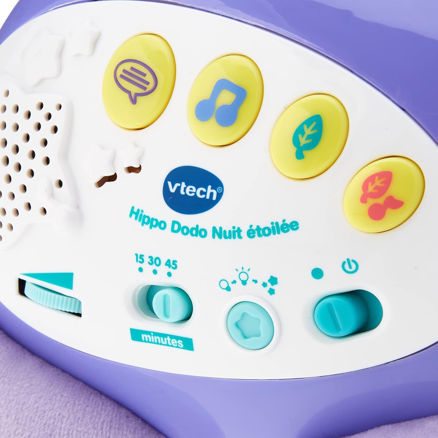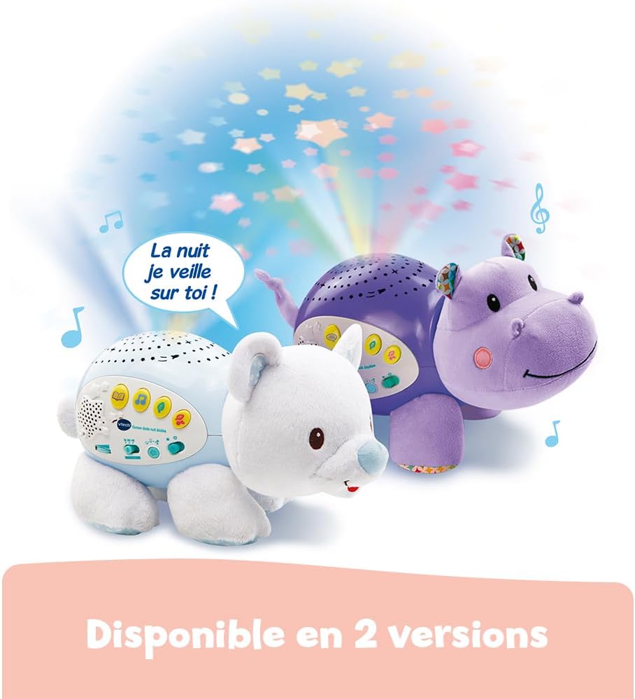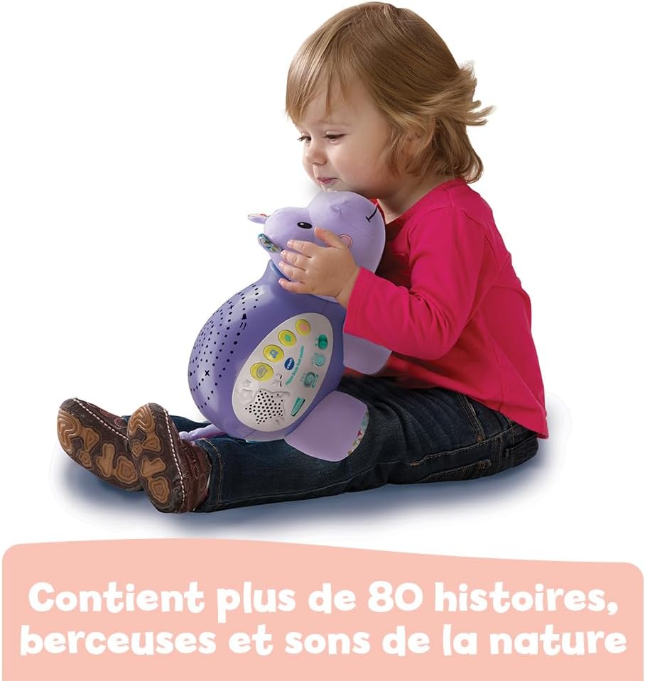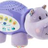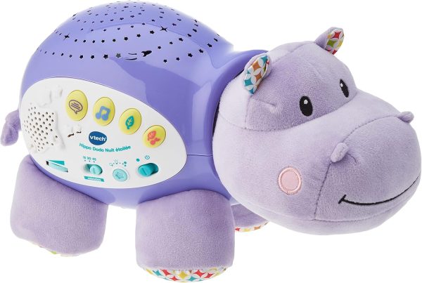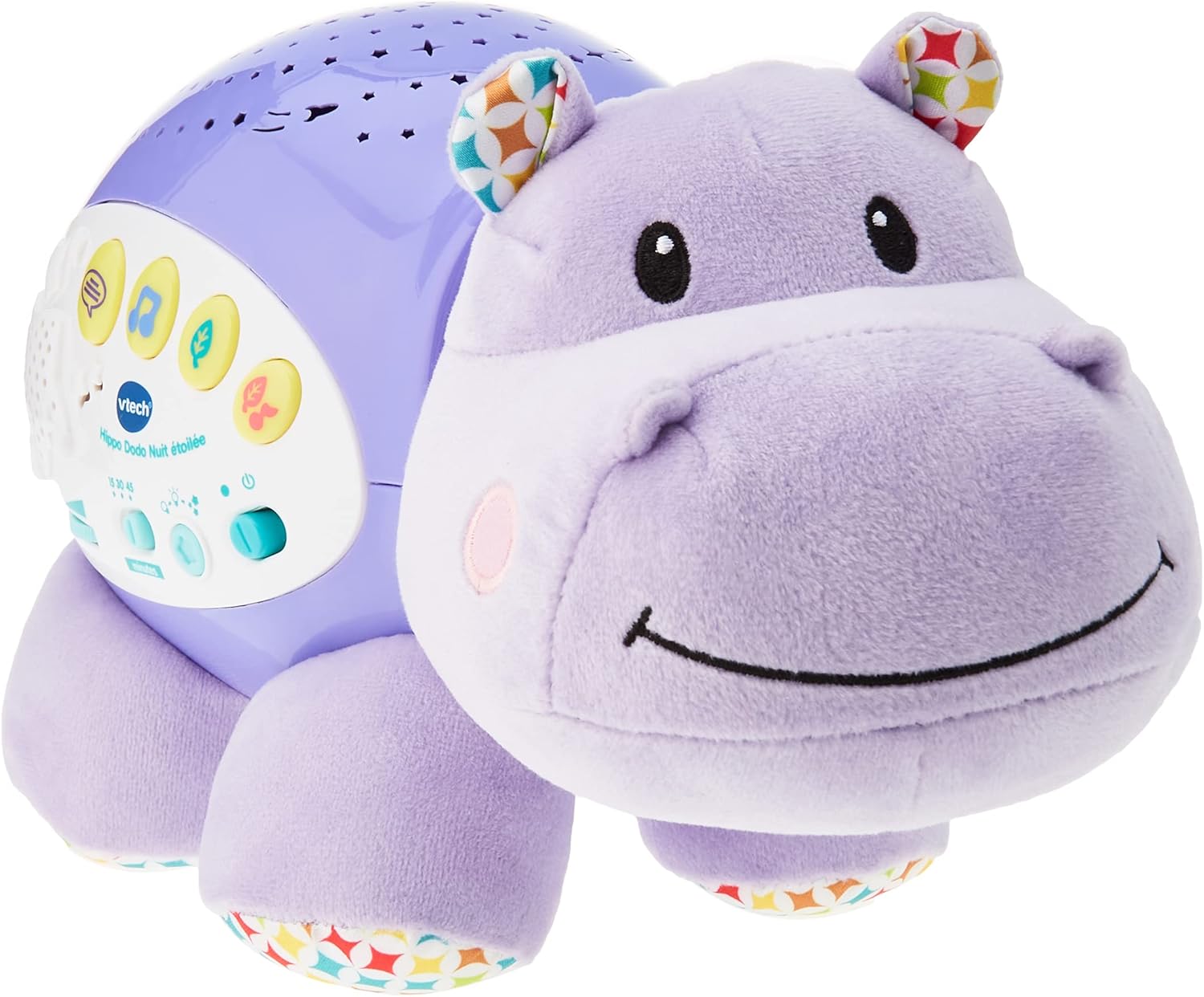 Sweet dreams are ahead with the Lil’ Critters Soothing Starlight Hippo by VTech. This cuddly hippo projects a vibrant starry night sky onto the ceiling in four different colors to the sounds of peaceful tunes, seven nursery rhymes, nature sounds and lullabies. Colorful light effects enhance visual awareness, while the comforting sounds and songs help soothe them to sleep. This helpful hippo also responds to your baby’s cries with calming music. The parent-friendly volume and timer controls let you choose how loud and long the sounds play. Sleep tight, little one!