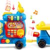 - The train counts the letter blocks when they’re dropped down the chute; storybook features sing-along songs and melodies