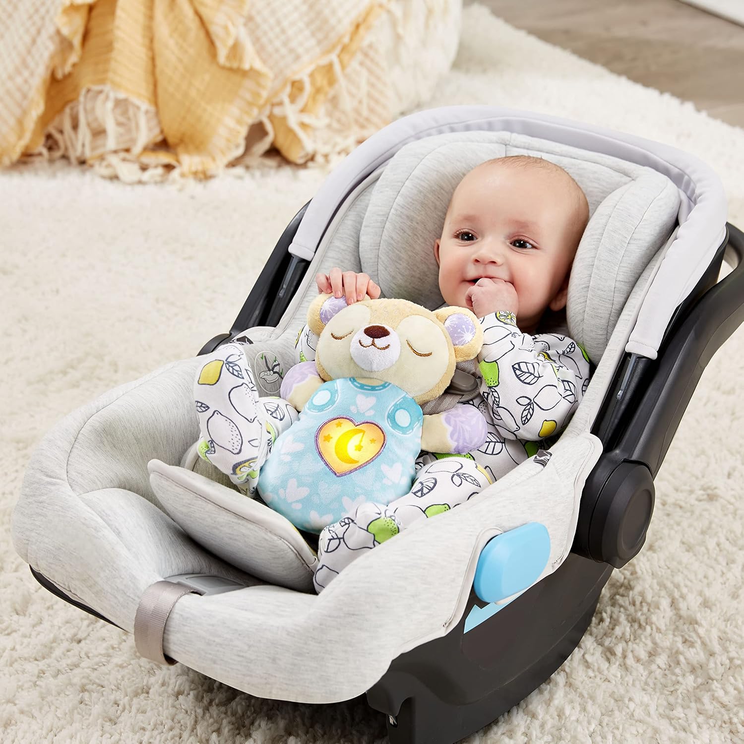 - Help babies self-soothe with gentle sounds and soft lights; press the glowing heart to change the music