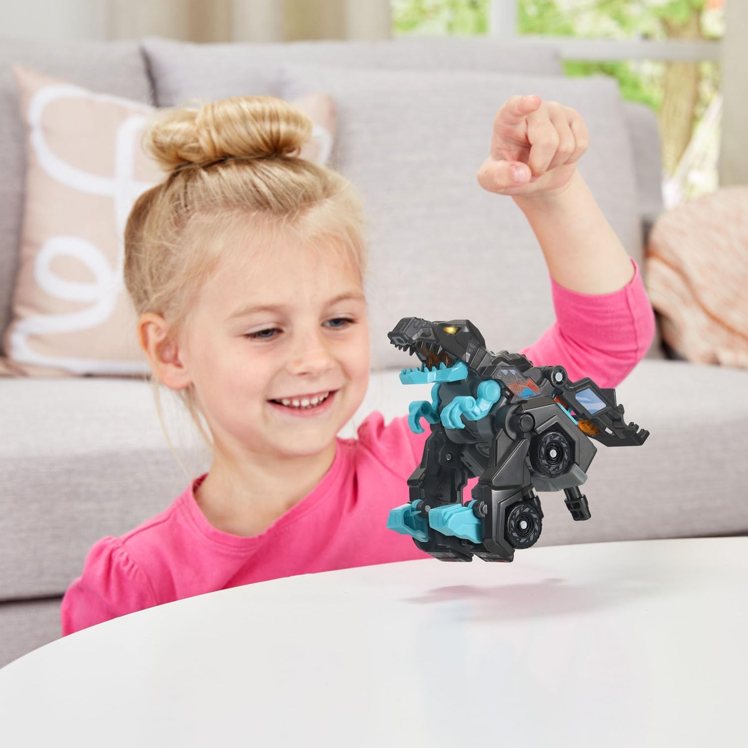 - One-touch transformation turns this trail-blazing terrain truck into a tower of T-Rex power