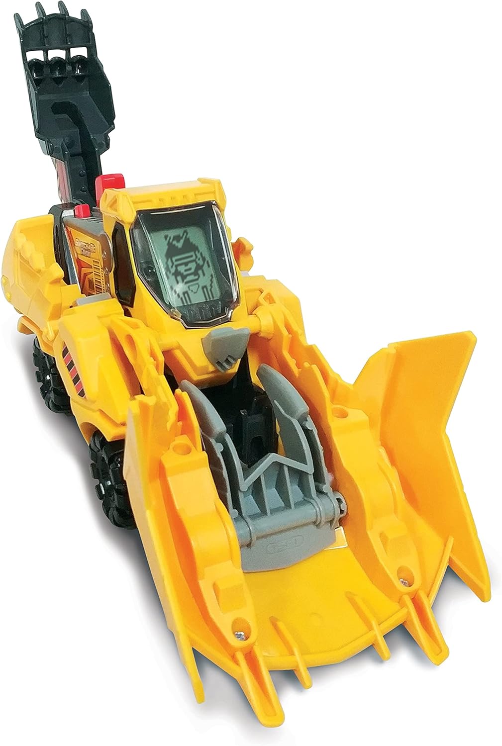 - Get ready to roll by transforming the dino into a bulldozer with role-play sounds and phrases; the LCD screen turns into and an animated driver in Vehicle mode