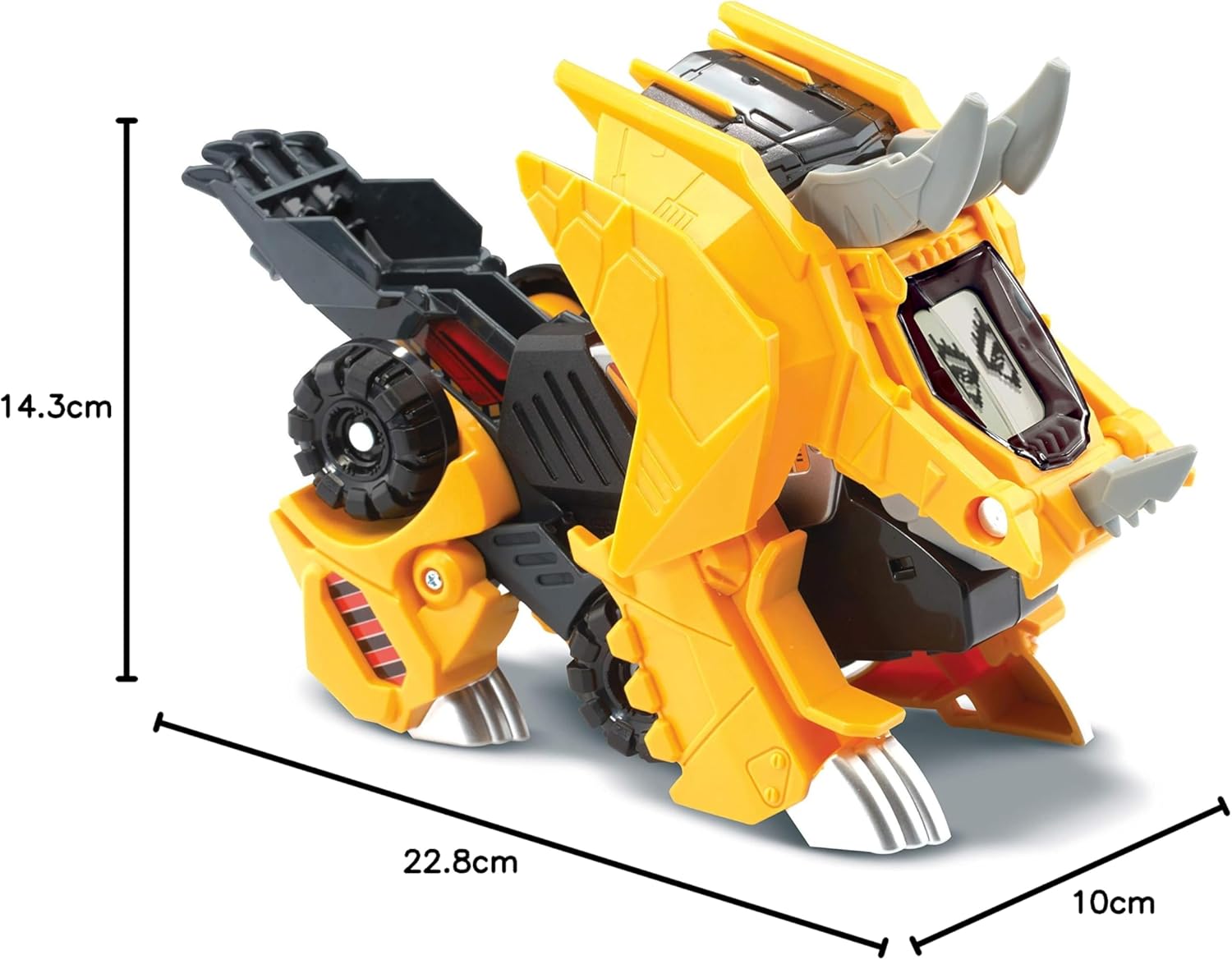 - Transform playtime with a triple-threat Triceratops that can change into a bulldozer with a few easy steps