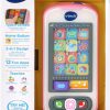 The Touch and Swipe Baby Phone by VTech captures your child’s imagination with their own smartphone for role-play fun! With light-up pretend apps and vivid colors, this touch screen baby phone engages your child with their very own realistic looking smartphone! Now your baby can role-play by calling family, friends or even their stuffed animals. The “Home” button feature allows you to record and save your home number on the toy! And the pretend calendar, clock and weather apps teach your baby about the day with the touch screen and slider–builds hand/eye coordination. Discover and explore with fun sounds and sing-along songs, introducing ABCs, 123s and first words. Slide between screens for two modes of play on this educational toy. It’s realistic role-play fun and learning on the go!
