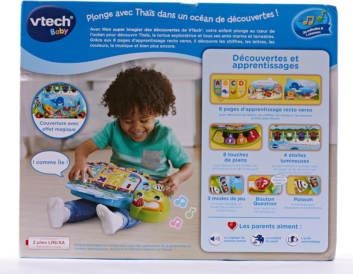 - Intended for ages 12-36 months; requires 2 AA batteries; batteries included for demo purposes only; new batteries recommended for regular use