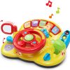 - Little hands eager to explore can turn the steering wheel and press colorful buttons to discover animals, vehicles and sounds with over 60 songs and phrases