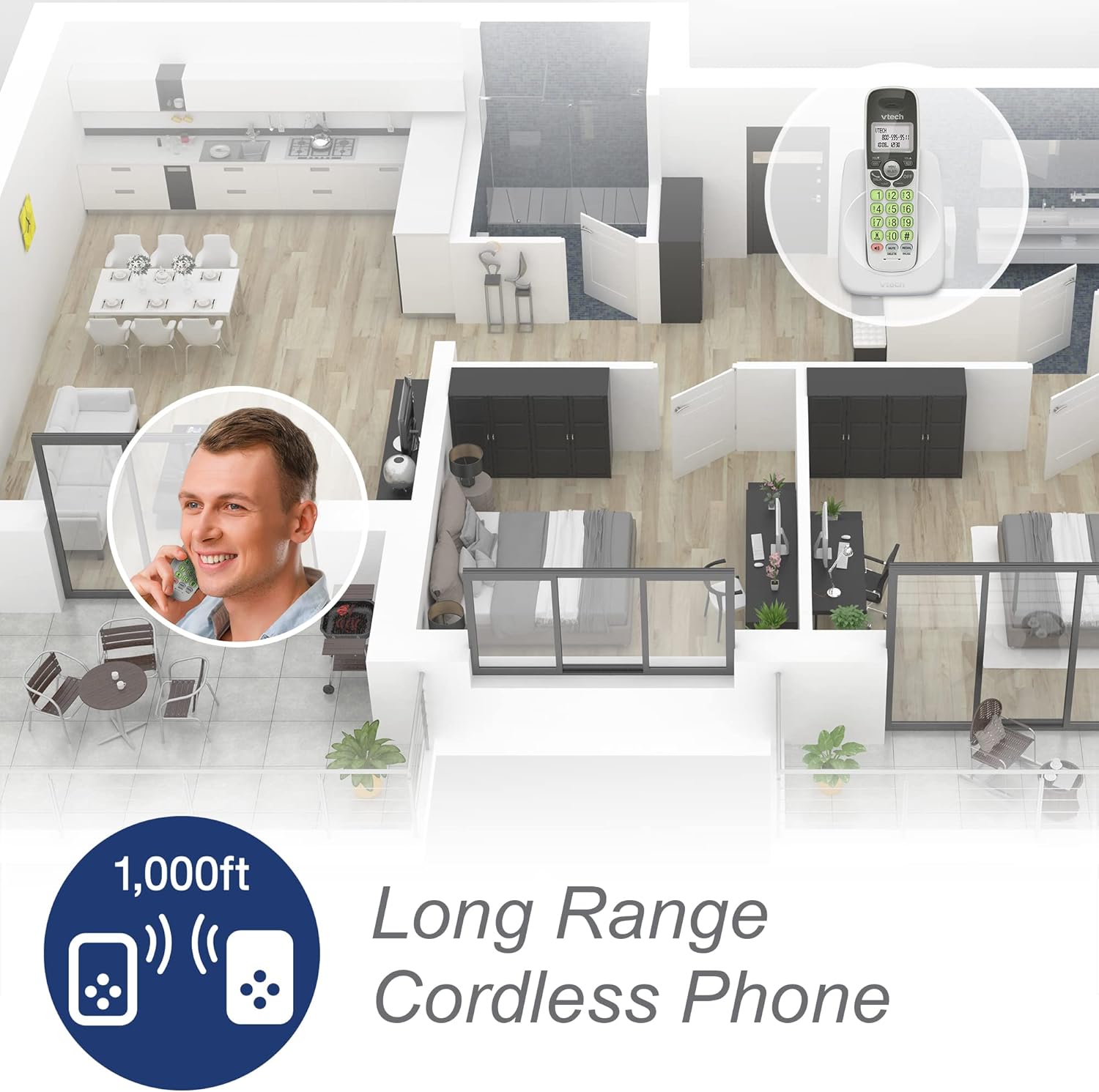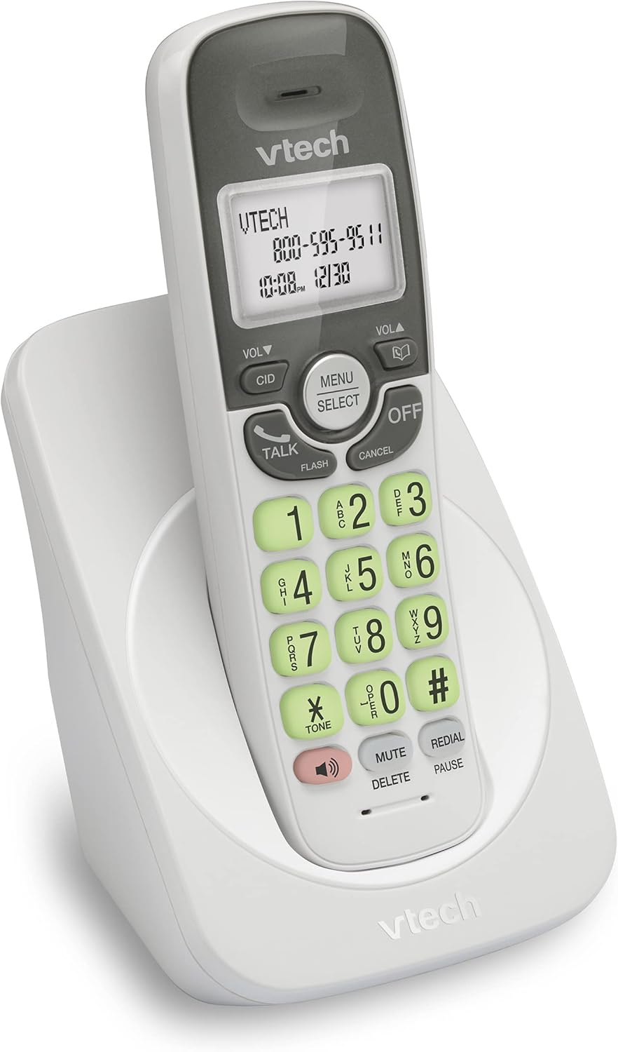The VTech VG101 DECT 6.0 Cordless Phone with a Full Duplex Speakerphone and Caller ID allows you to stay connected. A full-duplex handset speakerphone allows both ends to speak and be heard at the same time for conversations that are more true to life. DECT 6.0 transmission gives you private, interference-free sound from any room in your home. A backlit keypad and white lighted display allow for easy operation and dialing in low light. Know who’s calling with the Caller ID/Call Waiting feature.