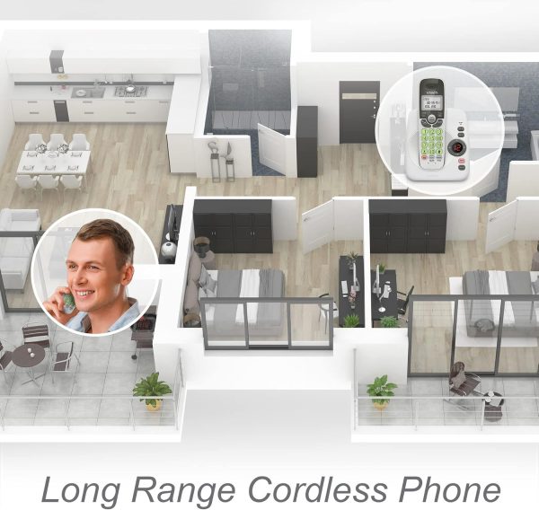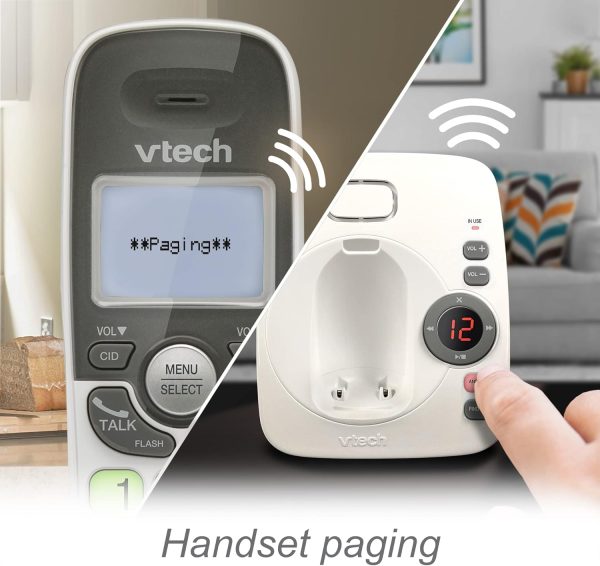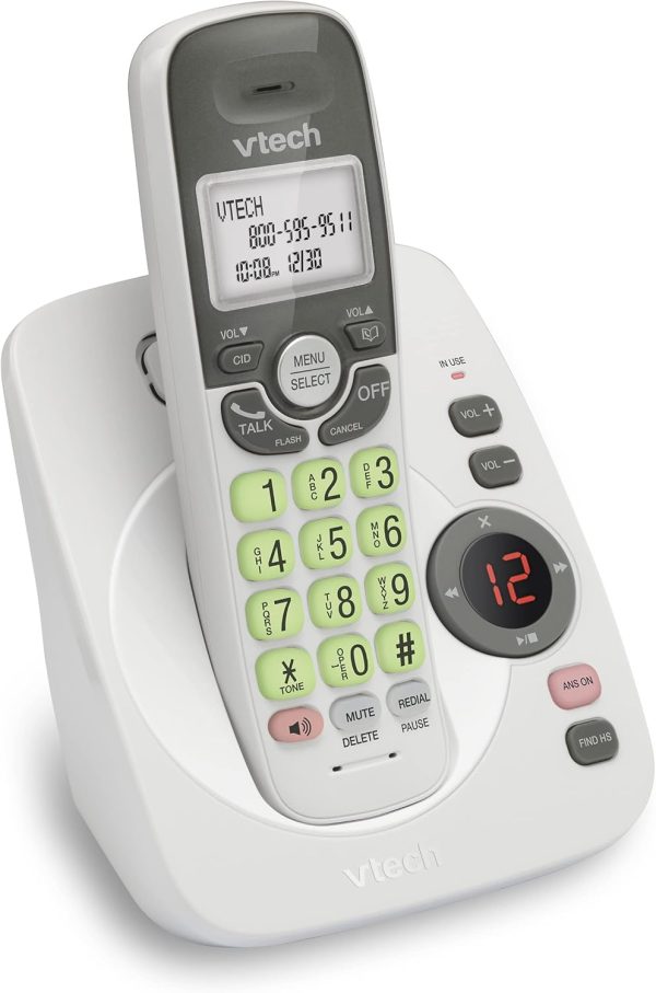 VTech VG104 DECT 6.0 Cordless Phone for Home with Answering Machine, Blue-White Backlit Display, Backlit Buttons, Full Duplex Speakerphone, Caller ID/Call Waiting, Reliable 1000 ft Range (White/Grey)
