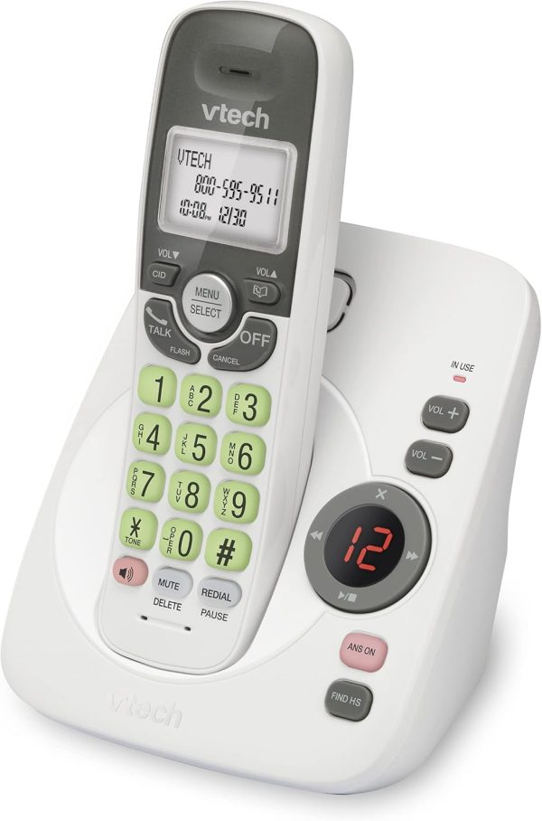 With up to 14 minutes of recording time, the VTech VG104 Cordless Phone with Answering System and Full Duplex Speakerphone grabs calls when you can’t. A full-duplex handset speakerphone allows both ends to speak and be heard at the same time for conversations that are more true to life. DECT 6.0 transmission gives you private, interference-free sound from any room in your home. A backlit keypad and white lighted display allow for easy operation and dialing in low light. Know who’s calling with the Caller ID/Call Waiting feature.