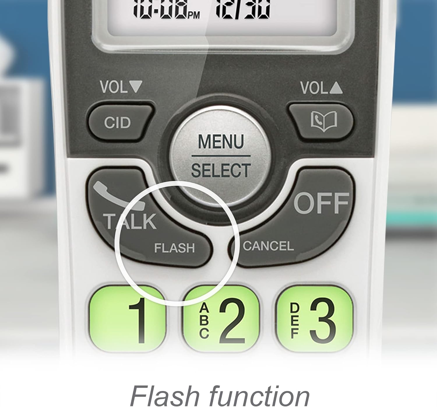 - White lighted display and backlit keypad – The entire keypad illuminates along with the LCD screen, allowing for easier viewing in dim light.