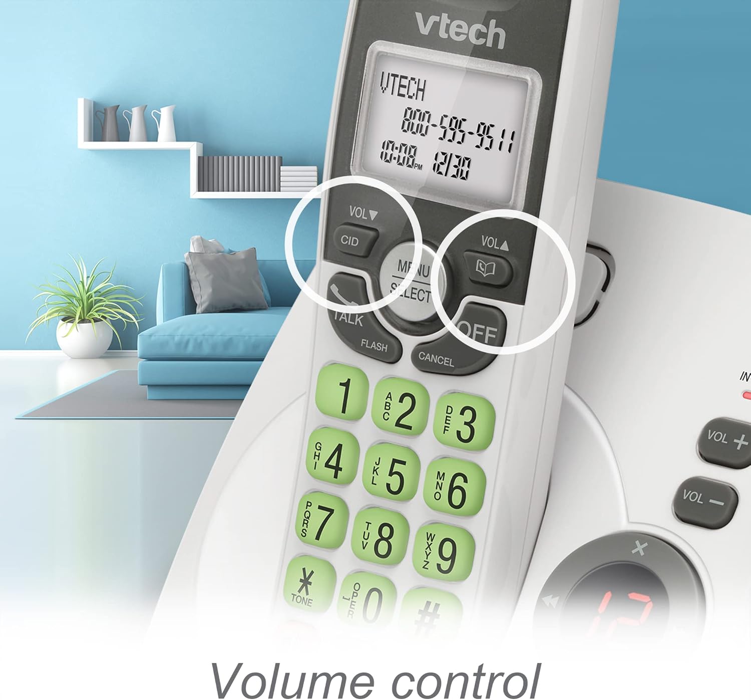 VTech VG104 DECT 6.0 Cordless Phone for Home with Answering Machine, Blue-White Backlit Display, Backlit Buttons, Full Duplex Speakerphone, Caller ID/Call Waiting, Reliable 1000 ft Range (White/Grey)