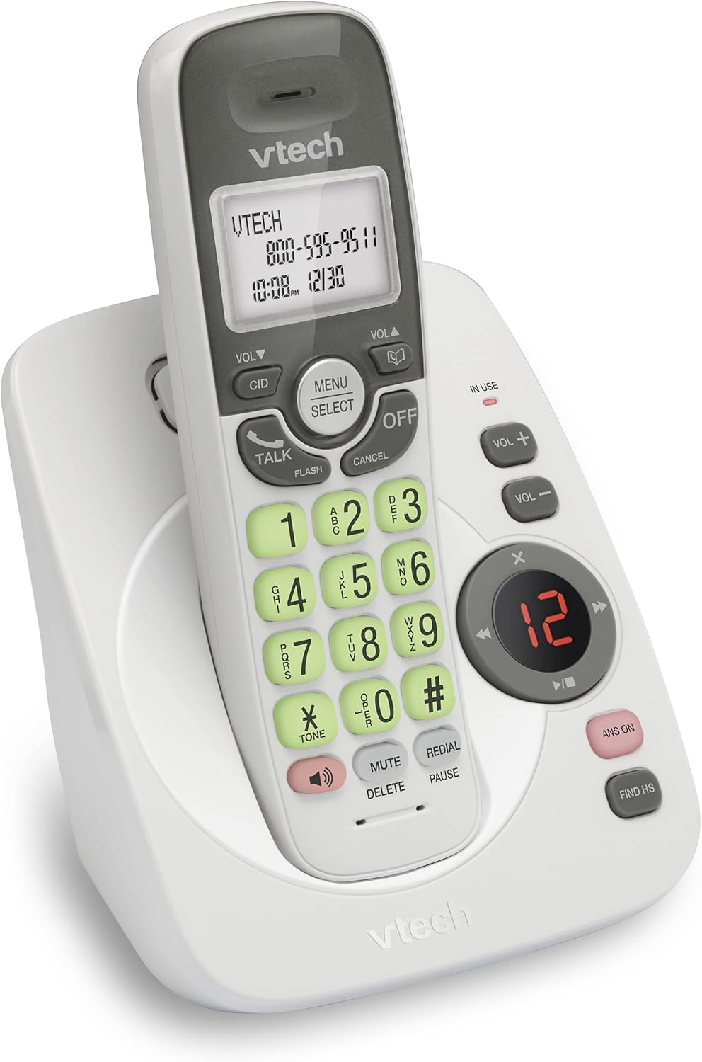 With up to 14 minutes of recording time, the VTech VG104 Cordless Phone with Answering System and Full Duplex Speakerphone grabs calls when you can’t. A full-duplex handset speakerphone allows both ends to speak and be heard at the same time for conversations that are more true to life. DECT 6.0 transmission gives you private, interference-free sound from any room in your home. A backlit keypad and white lighted display allow for easy operation and dialing in low light. Know who’s calling with the Caller ID/Call Waiting feature.