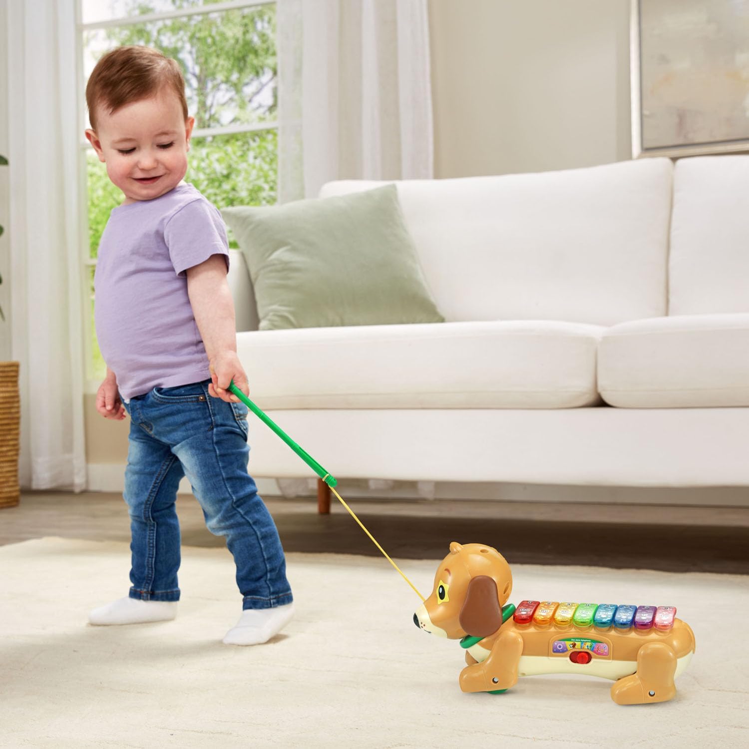 - Grab the mallet and pull the pup along to continue the music as he walks
