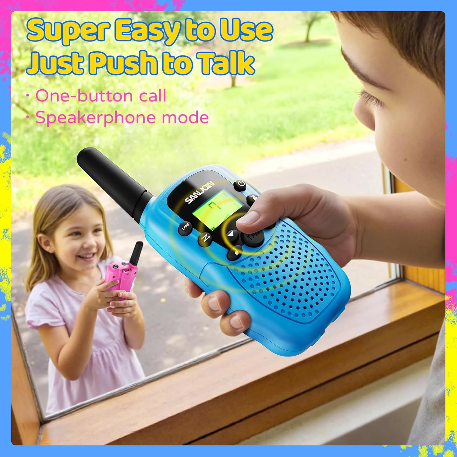 - [Clear Calls]: Advanced noise reduction and 3km range ensure crisp sound, perfect for toddlers, kids ages 4-8 5-7, and great for indoor outdoor camping play group games.