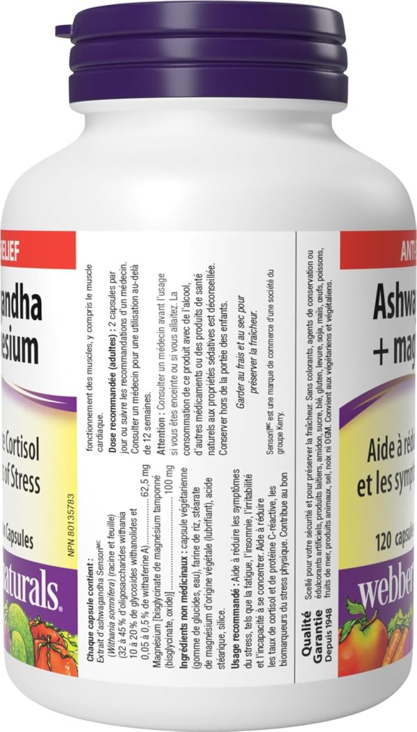 Webber Naturals Ashwagandha + Magnesium, 120 Capsules, Helps to Reduce Cortisol and Symptoms of Stress, Vegan