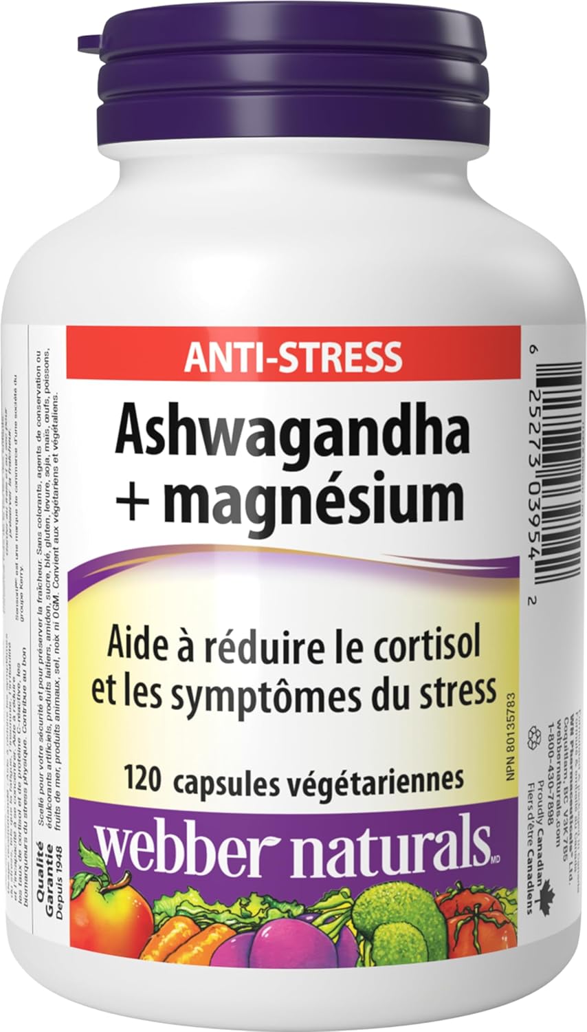 Webber Naturals Ashwagandha + Magnesium, 120 Capsules, Helps to Reduce Cortisol and Symptoms of Stress, Vegan