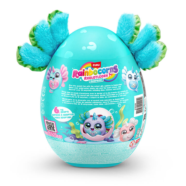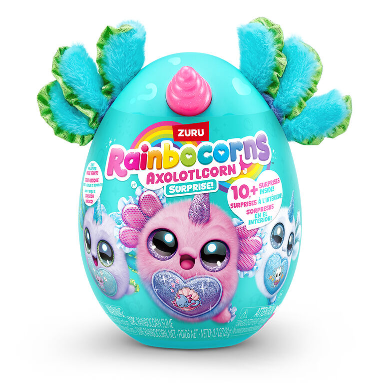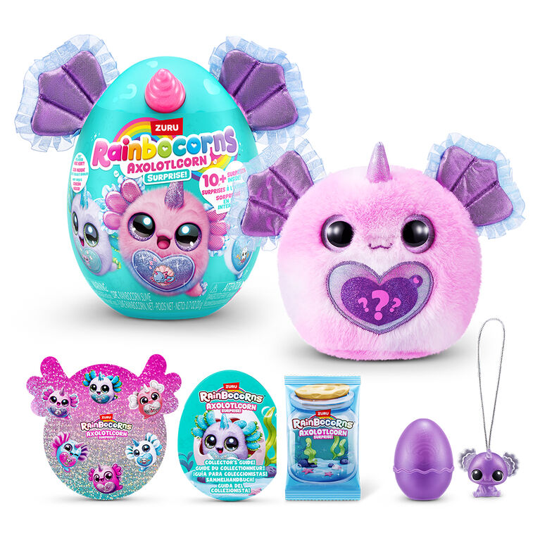 Discover the wonders of axolotls with the Rainbocorns Axolotlcorn Surprise, the latest magical arrival in Rainboville! Each Axolotlcorn plush comes with 10 exciting axolotl-themed surprises and a baby Boo-Boocorn companion waiting to be hatched. With 6 unique Axolotlcorns to collect, the adventure is just beginning! Unlock surprises and dive into a world full of fun and magic with this soft and cuddly plush. Crack open the egg and discover your brand-new axolotl bestie! Each Rainbocorns Axolotlcorn Surprise is packed with 10 surprises waiting to be uncovered. Plus, meet the adorable baby Boo-Boocorn collectible, the perfect companion for your axolotyl plush. Collect all 6 Axolotlcorns and dive into a world of adventure with your new friends. The fun is just beginning!